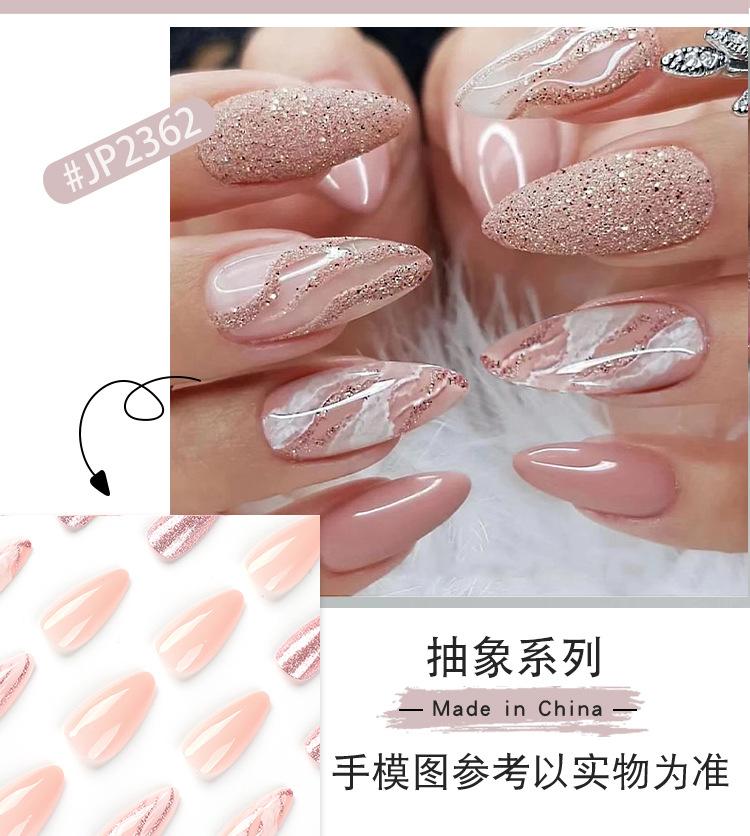 Venta al por mayor de parches para uñas, uñas postizas con acabado de brillo en polvo suave y diseño de uñas al por mayor.