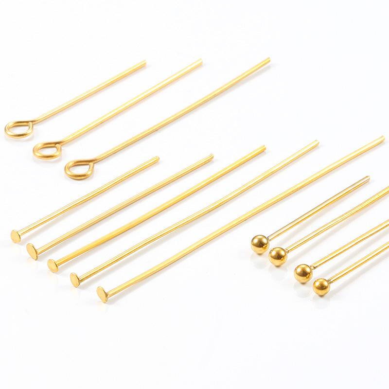 Aguja de joyería dorada de acero inoxidable, accesorios de bricolaje, aguja de 9 palabras, aguja de cabeza redonda, aguja en forma de T, accesorios de material de bricolaje con cuentas de perla