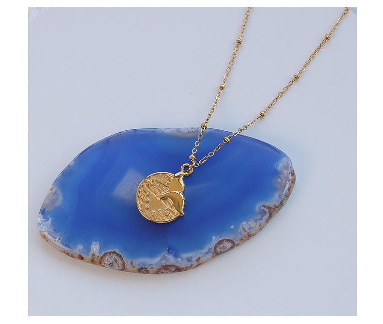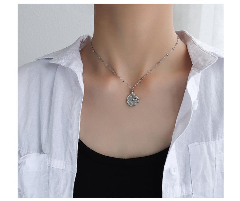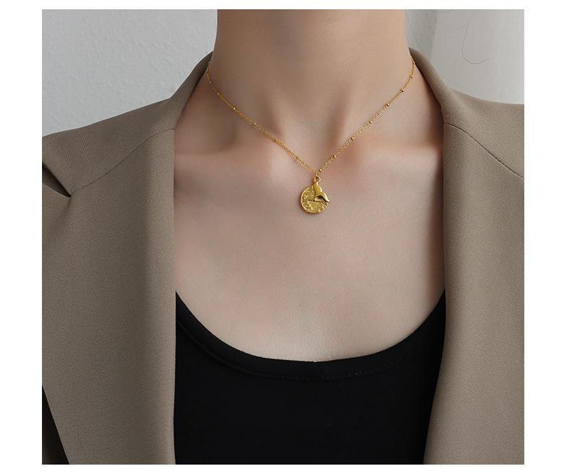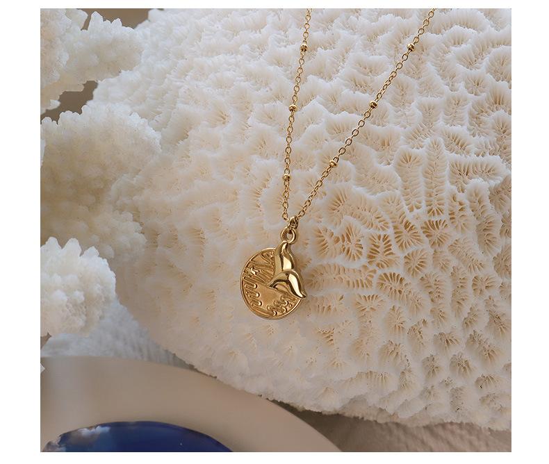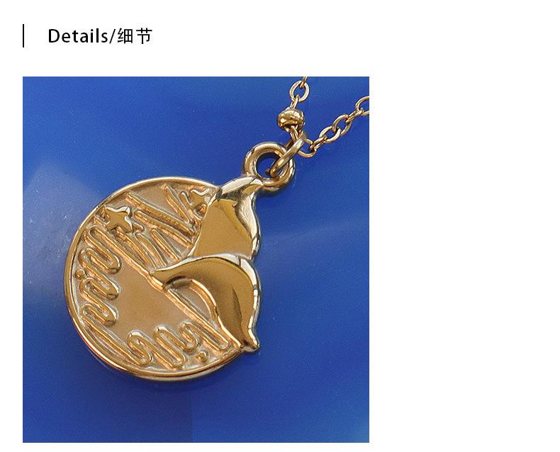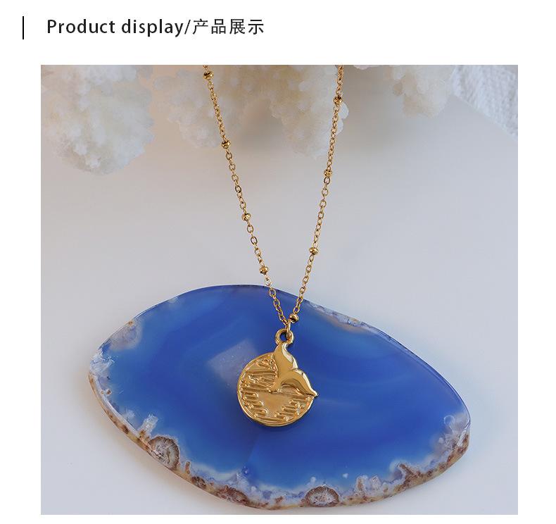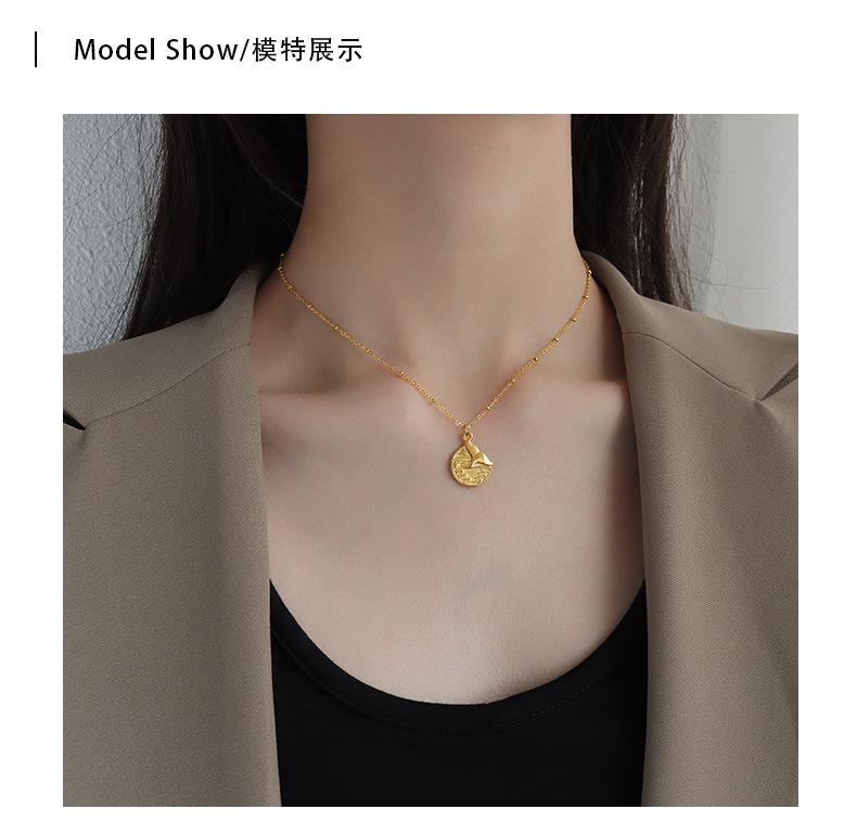 Collar Marka con personalidad sencilla, joyería europea y americana, colgante redondo de cola de pez, cadena de clavícula de acero de titanio y oro de 18 quilates.