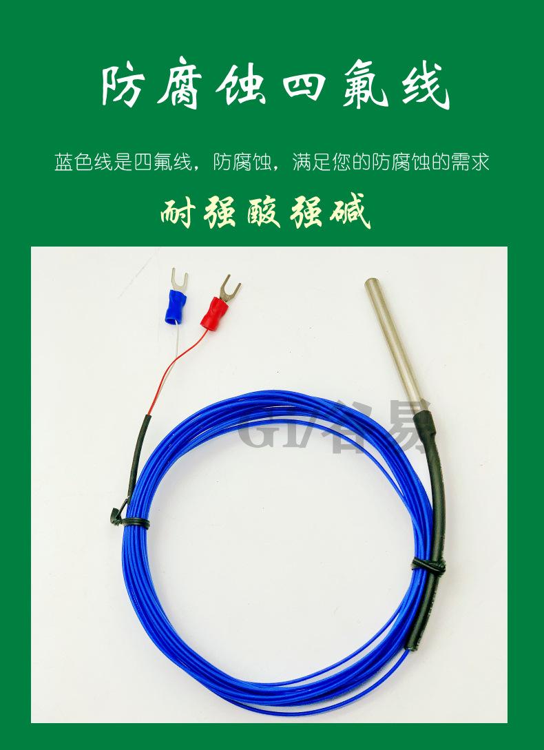 Sensor de temperatura de termopar tipo K, sonda de línea de temperatura, tipo teflón, azul tetrafluororo, resistente a la corrosión, ácidos y álcalis.