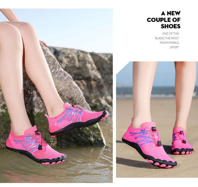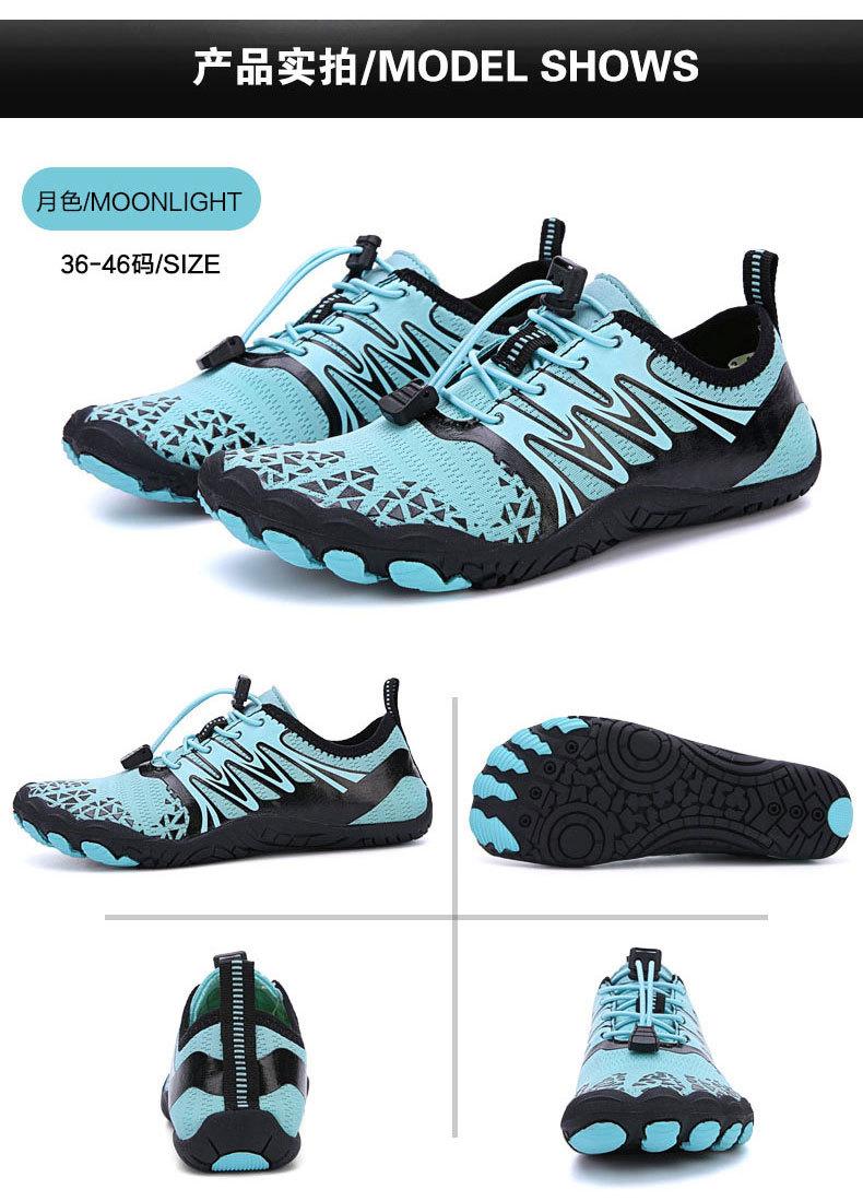 Nuevos zapatos de buceo y vadeo al aire libre transfronterizos, zapatos de playa contracorriente, zapatos de fitness antideslizantes y transpirables de cinco dedos para parejas