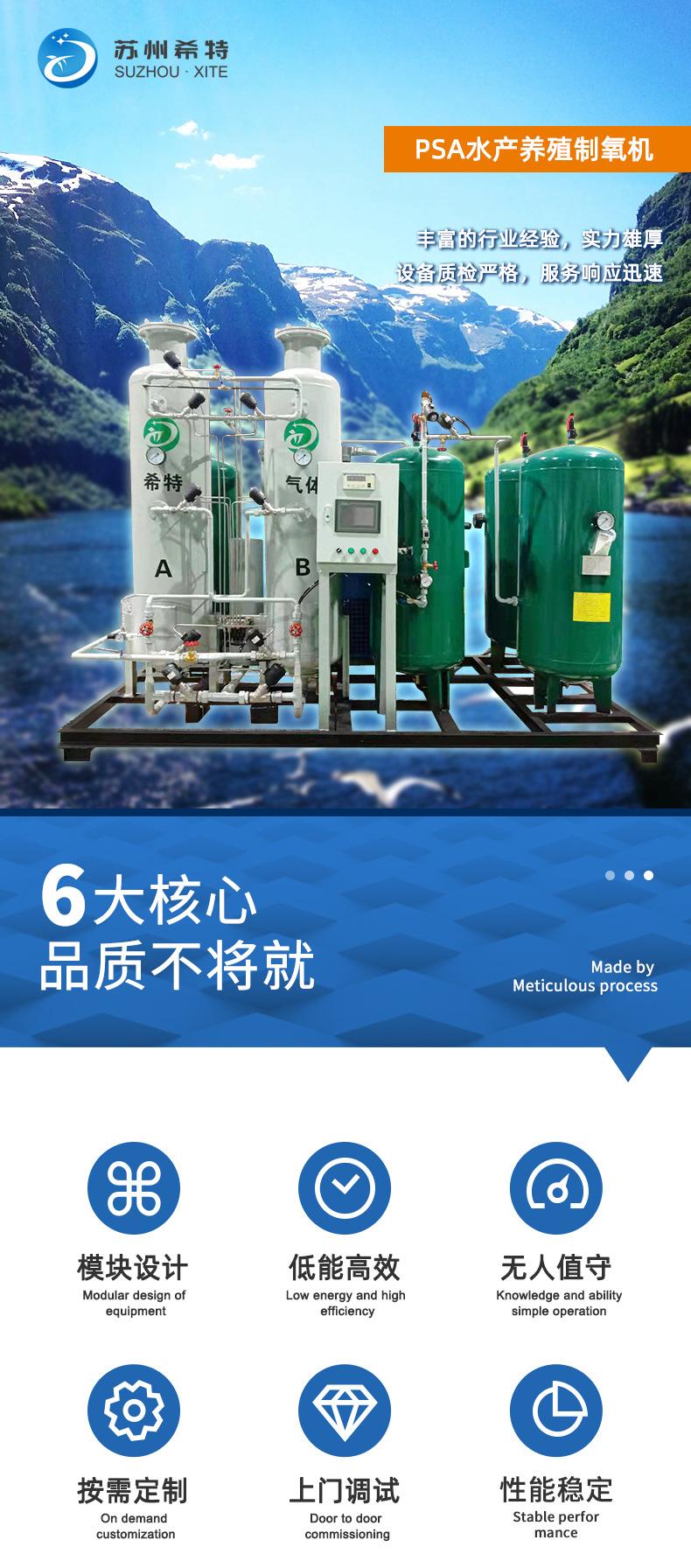 O oxigênio puro produzido pelo gerador de oxigênio (máquina de oxigênio PSA, equipamento de oxigênio) pode aumentar muito o oxigênio dissolvido na água, melhorar a atividade e a eficiência alimentar de peixes e camarões, encurtar o período de maturidade disfarçado e também aumentar a densidade de reprodução . , a mesma tonelada de água utilizando oxigênio puro pode aumentar a produção de oxigênio várias vezes mais do que a oxigenação do ar. É amplamente utilizado na criação em larga escala, principalmente usando oxigênio líquido e garrafas de oxigênio. No entanto, em comparação com a criação em pequena e média escala, o uso de oxigênio líquido, garrafas de oxigênio, etc. tem requisitos mais elevados e requer substituição frequente, adição de matérias-primas, etc. condições de uso e não é adequado para agricultura de pequena e média escala. Portanto, para tornar o oxigênio puro adequado para criação de pequeno e médio porte, surgiram equipamentos de produção de oxigênio puro.