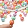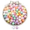 Cuentas redondas acrílicas chapadas en color sólido, cuentas con agujero recto, cuentas sueltas hechas a mano, accesorios para pulseras DIY.