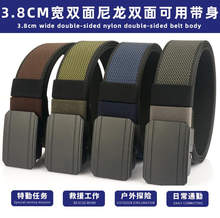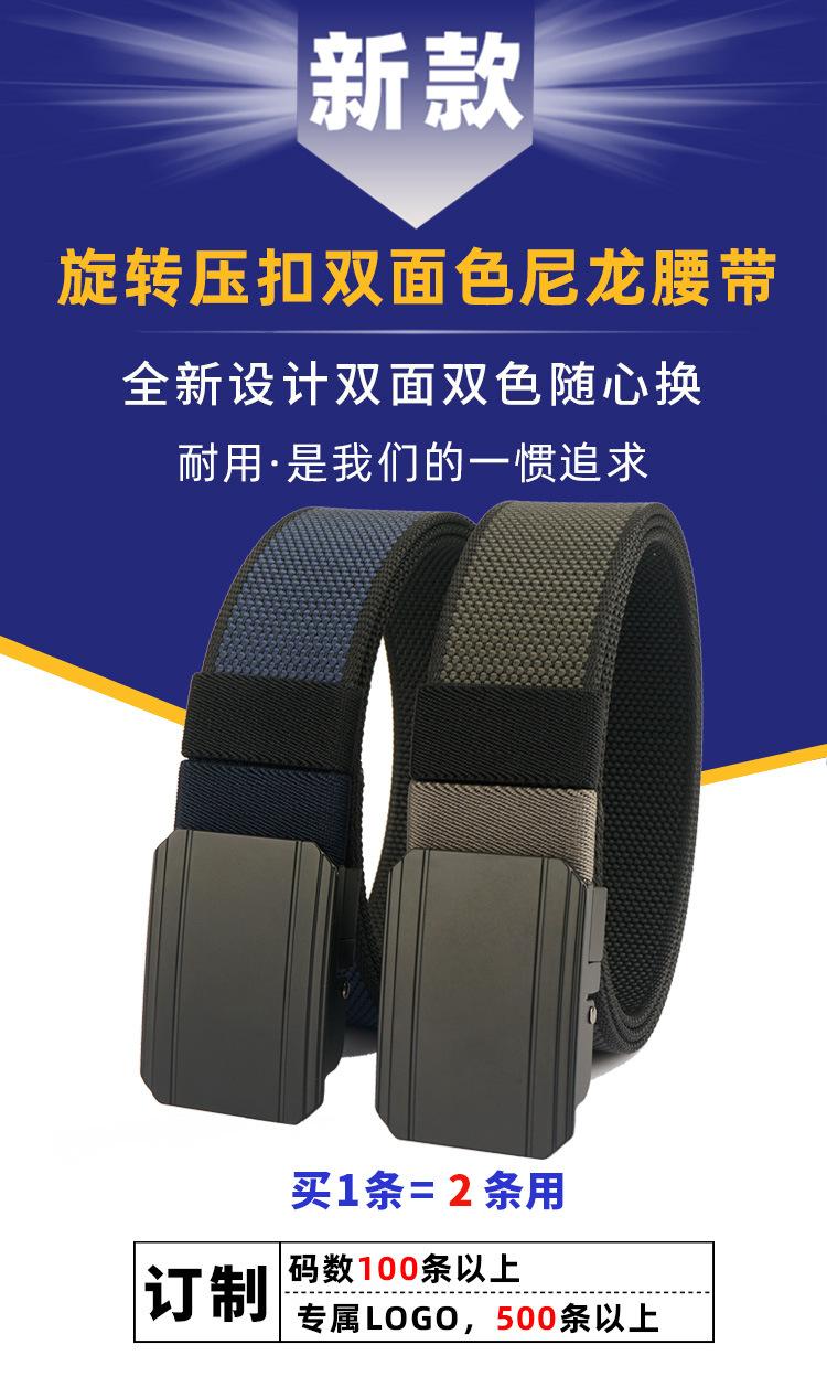 Nuevo cinturón de nailon giratorio de doble cara y doble uso para hombre, casual, versátil, tejido de poliéster, cinturón de lona simple