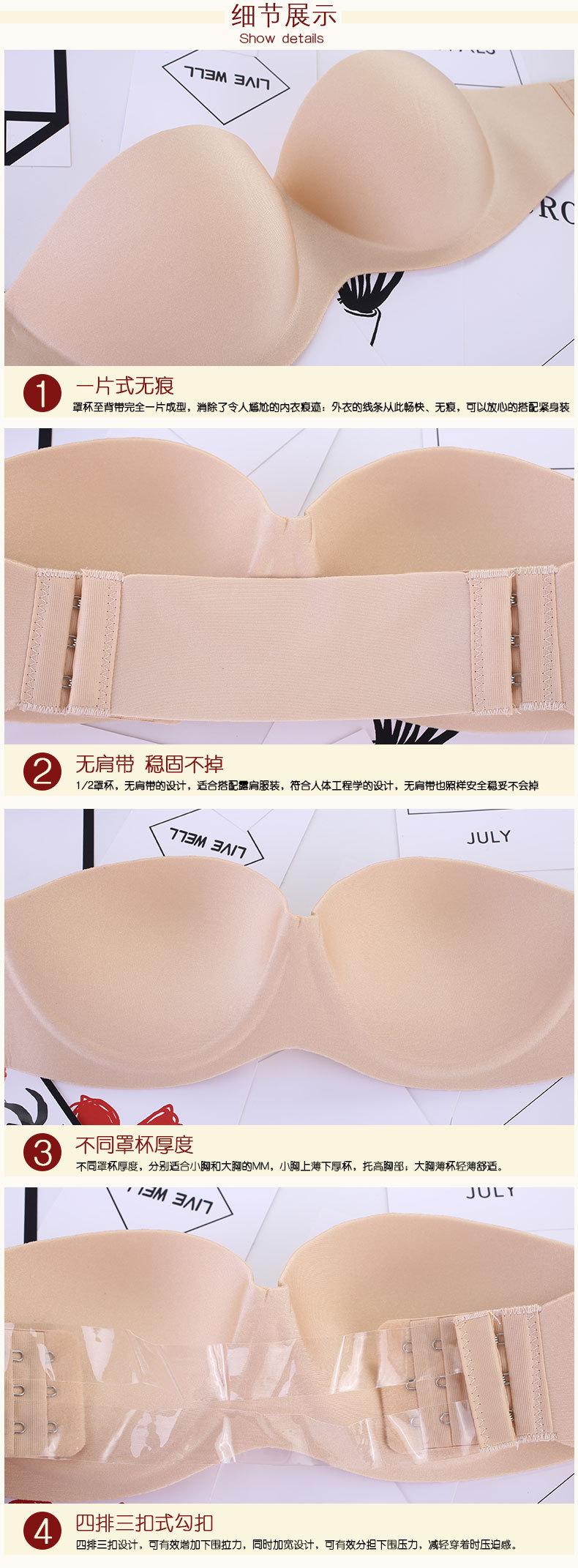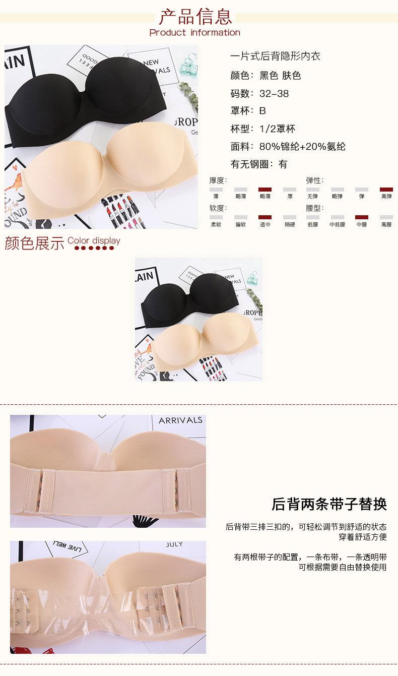 Sujetador invisible sin tirantes, ropa interior sexy sin costuras, parche fino en el pecho, vestido de novia, push-up, antideslizante, hermosa parte superior del tubo de la espalda de verano