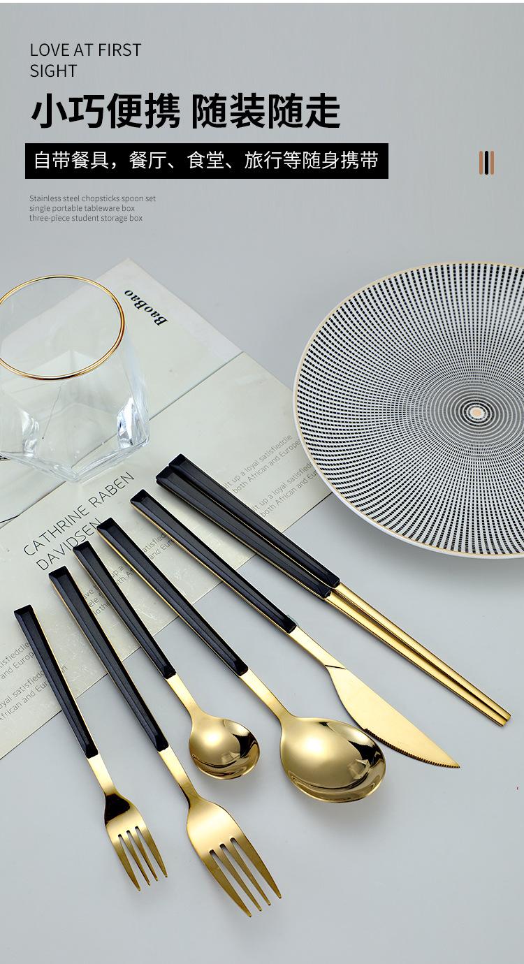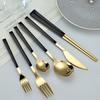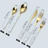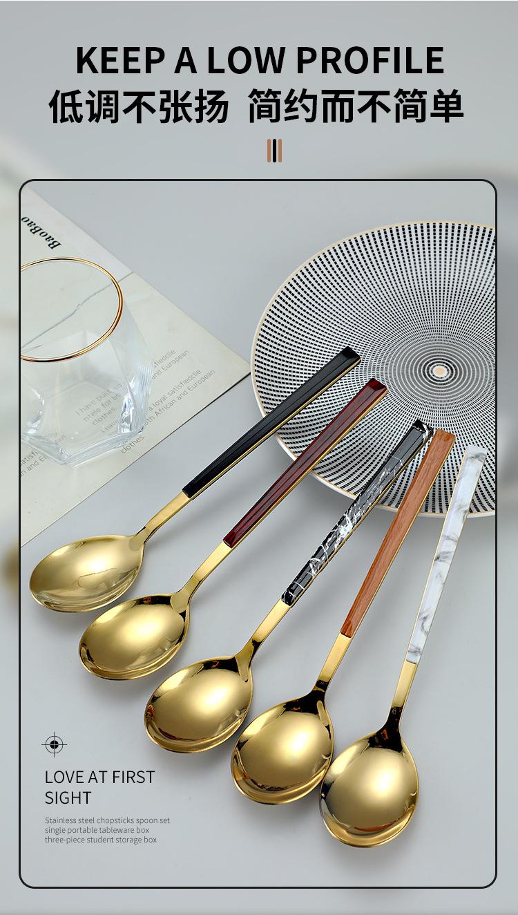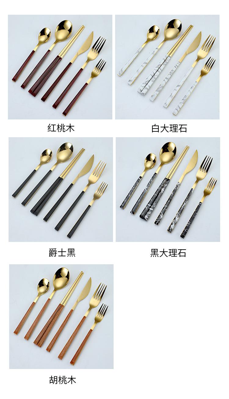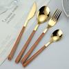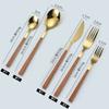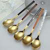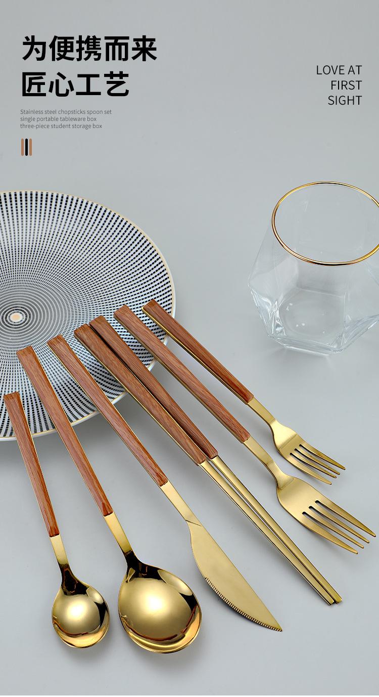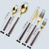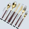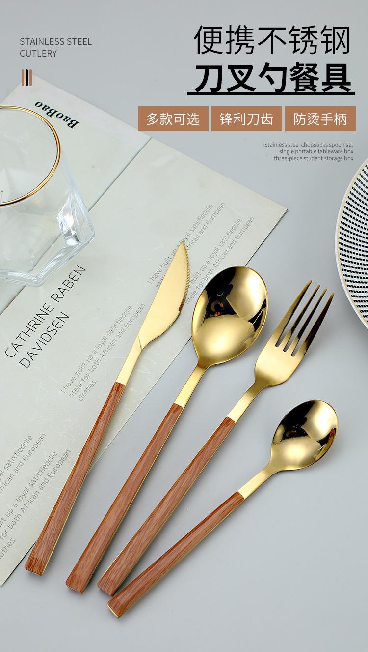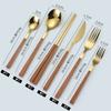 Cuchara y tenedor de acero inoxidable estilo coreano, juego de vajilla con clip dorado, mango de imitación de madera, cuchillo y tenedor, cuchara, palillos, cuchara de café, vajilla occidental.