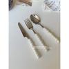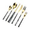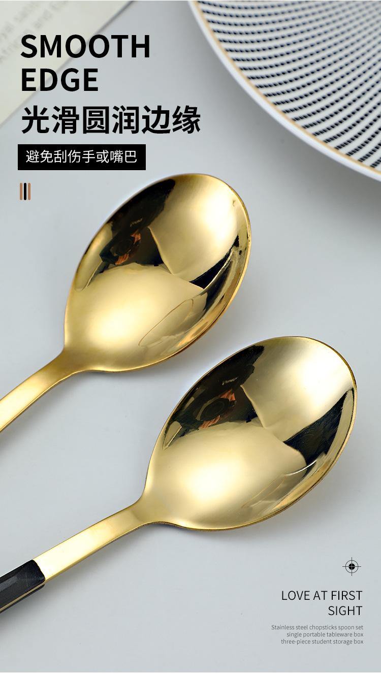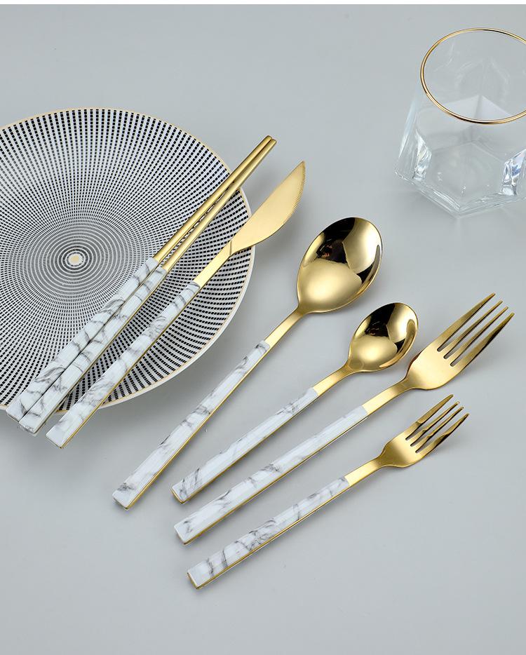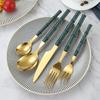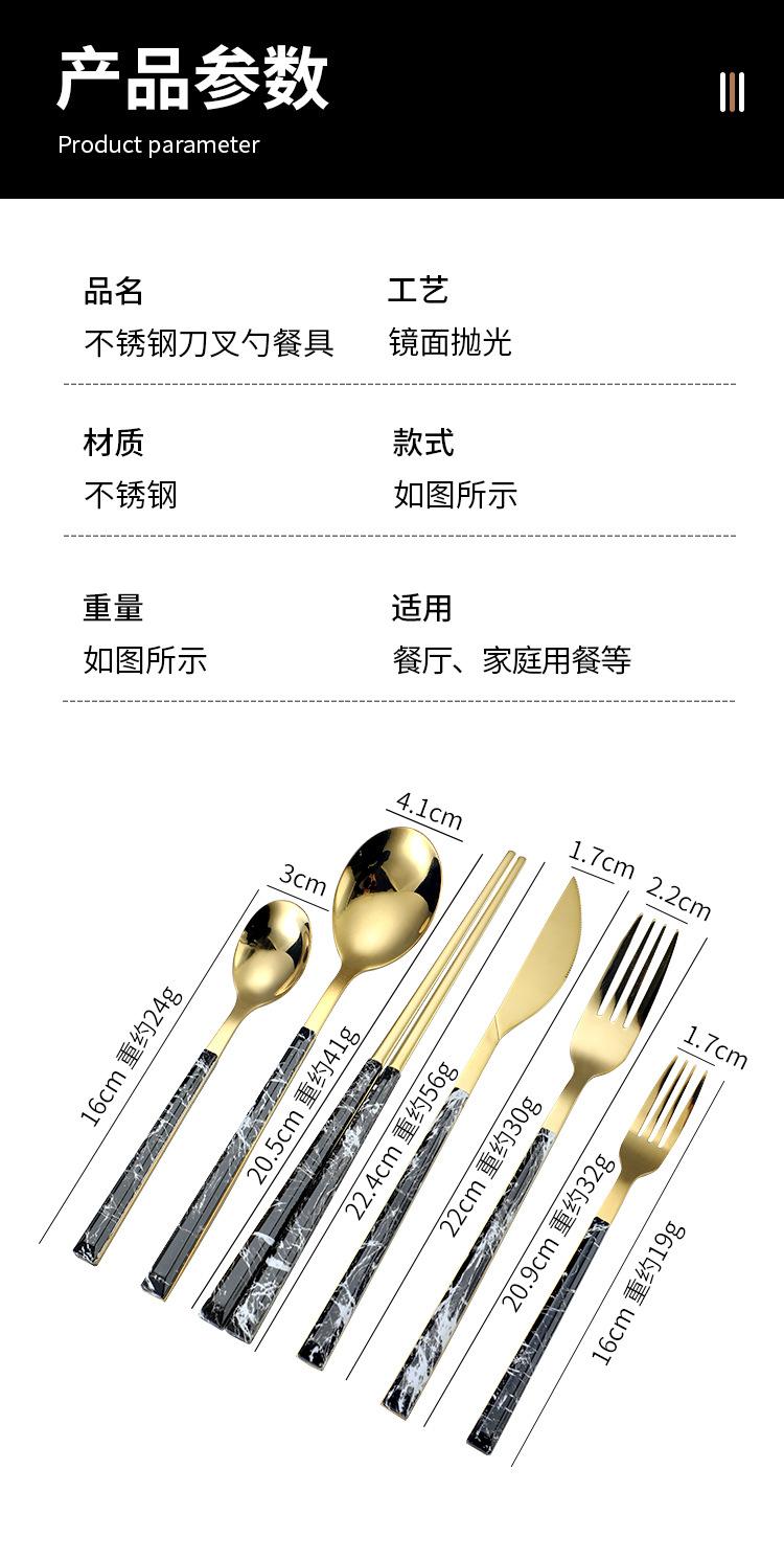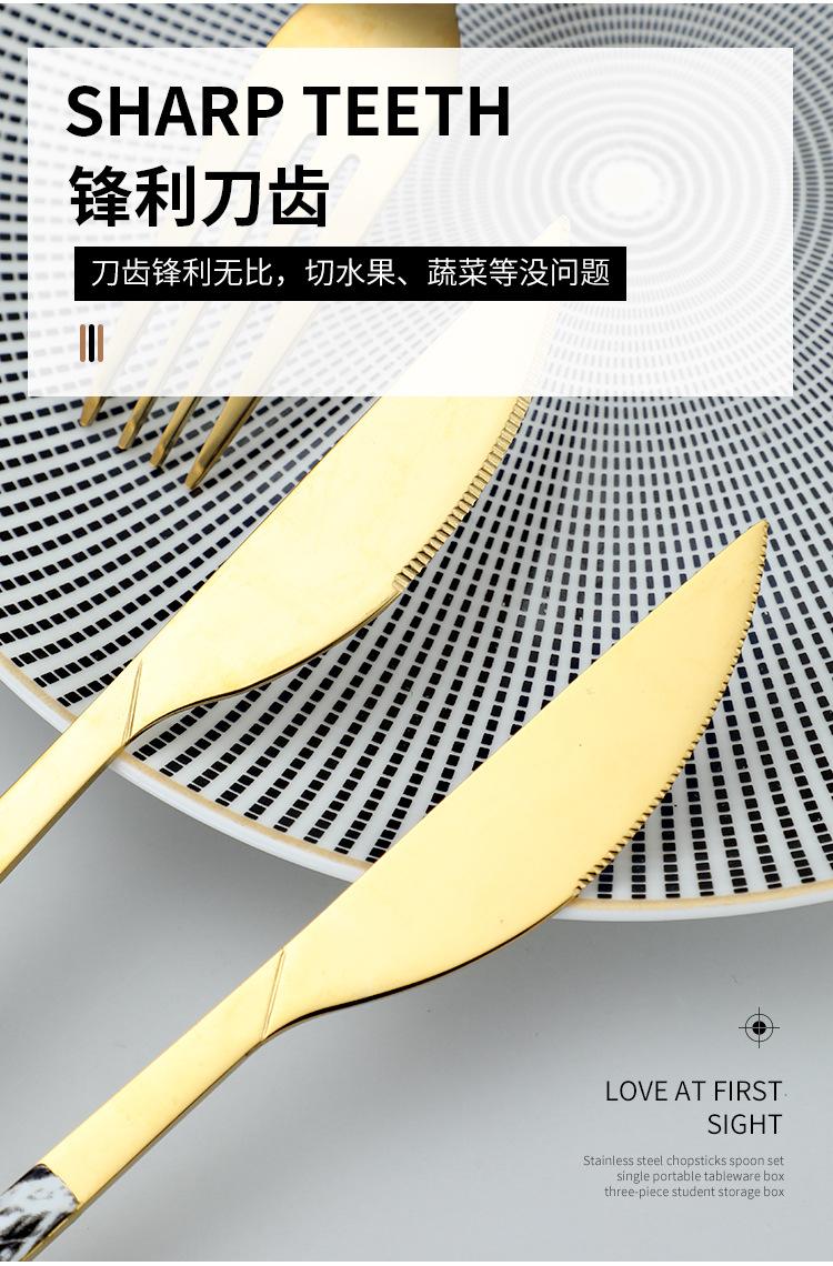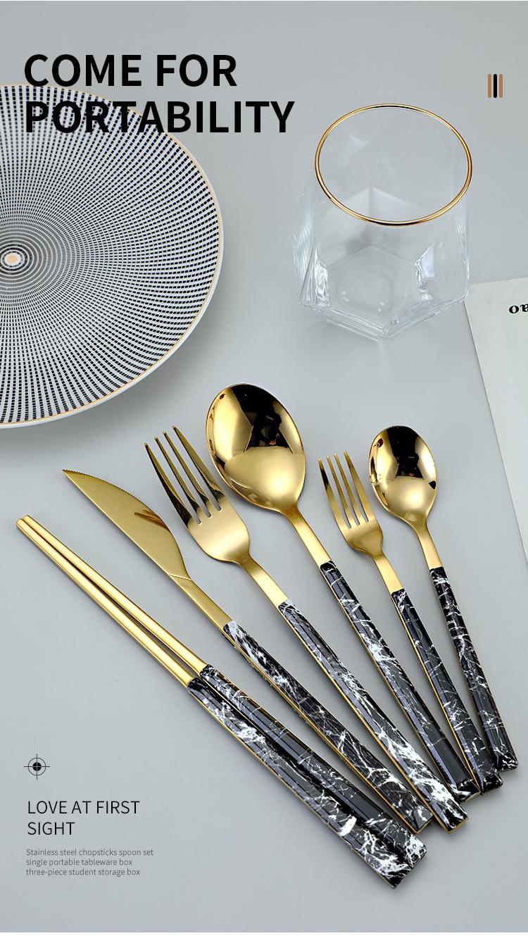 Cuchara y tenedor de acero inoxidable estilo coreano, juego de vajilla con clip dorado, mango de imitación de madera, cuchillo y tenedor, cuchara, palillos, cuchara de café, vajilla occidental.