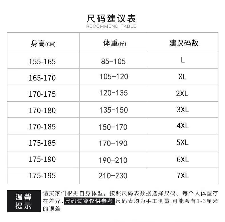 L, XL, 2XL, 3XL, 4XL, 5XL, 6XL, 7XL