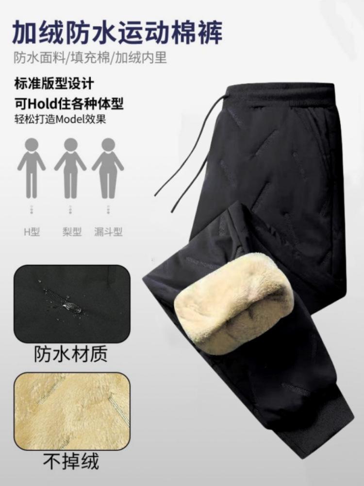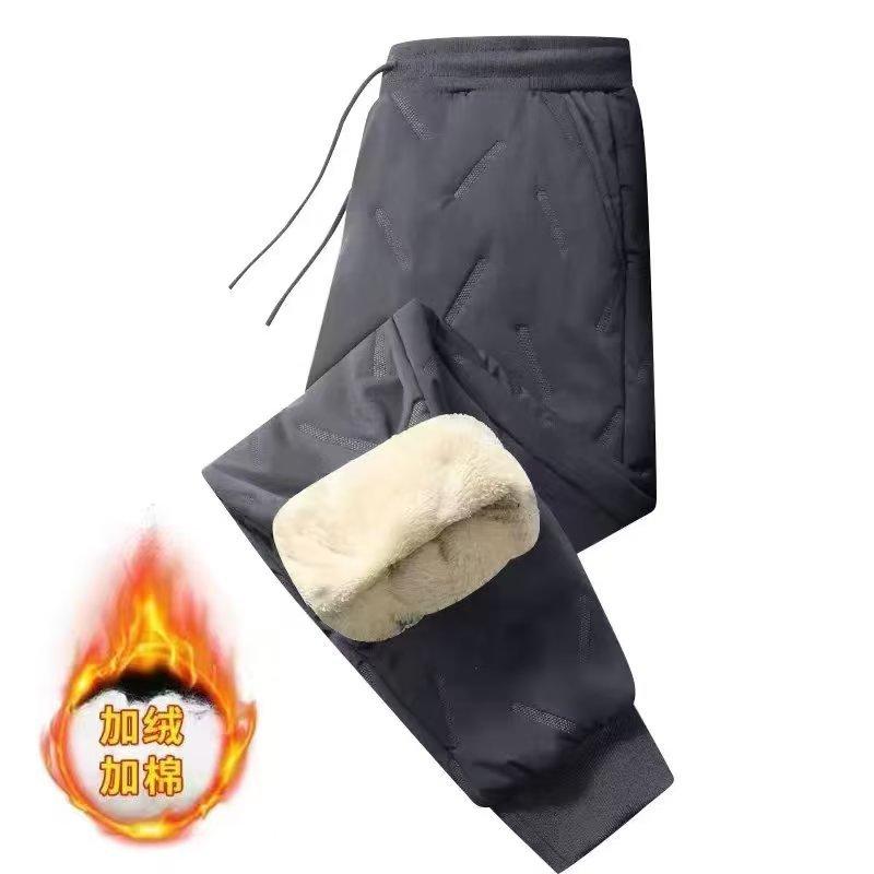 Pantalones de algodón de invierno para hombre, extra grandes, forrados con vellón de cachemira, gruesos, resistentes al frío, ropa de invierno, pantalones casuales holgados y cálidos de moda