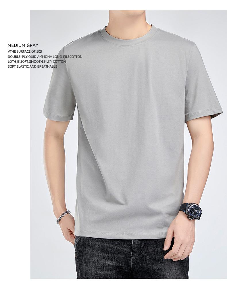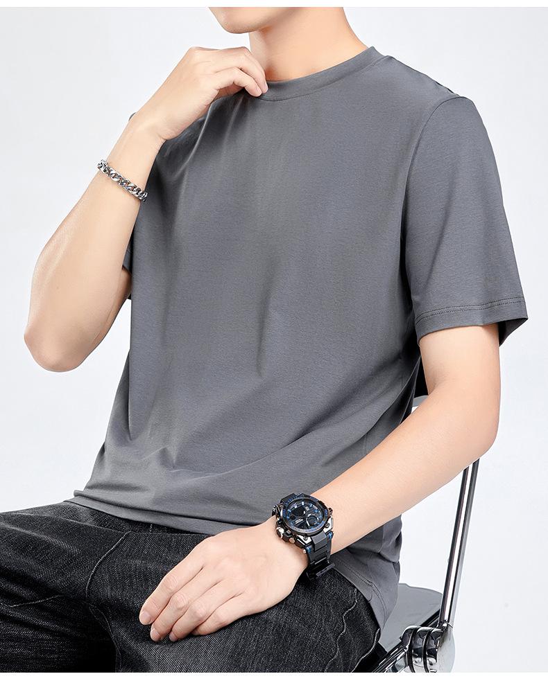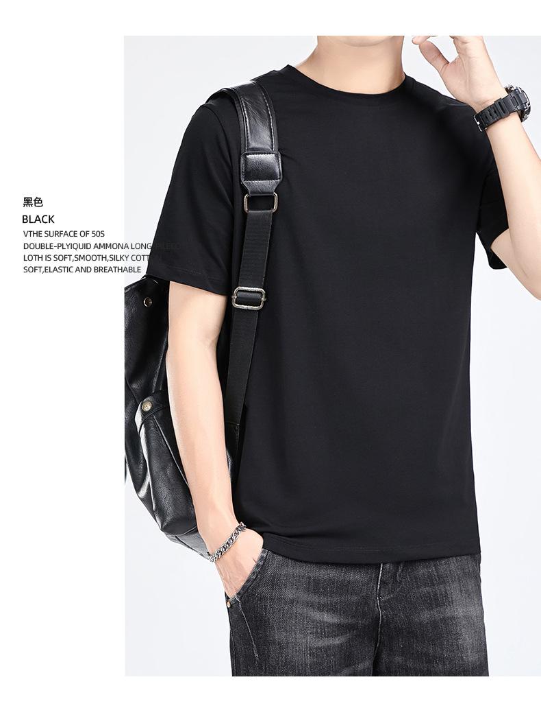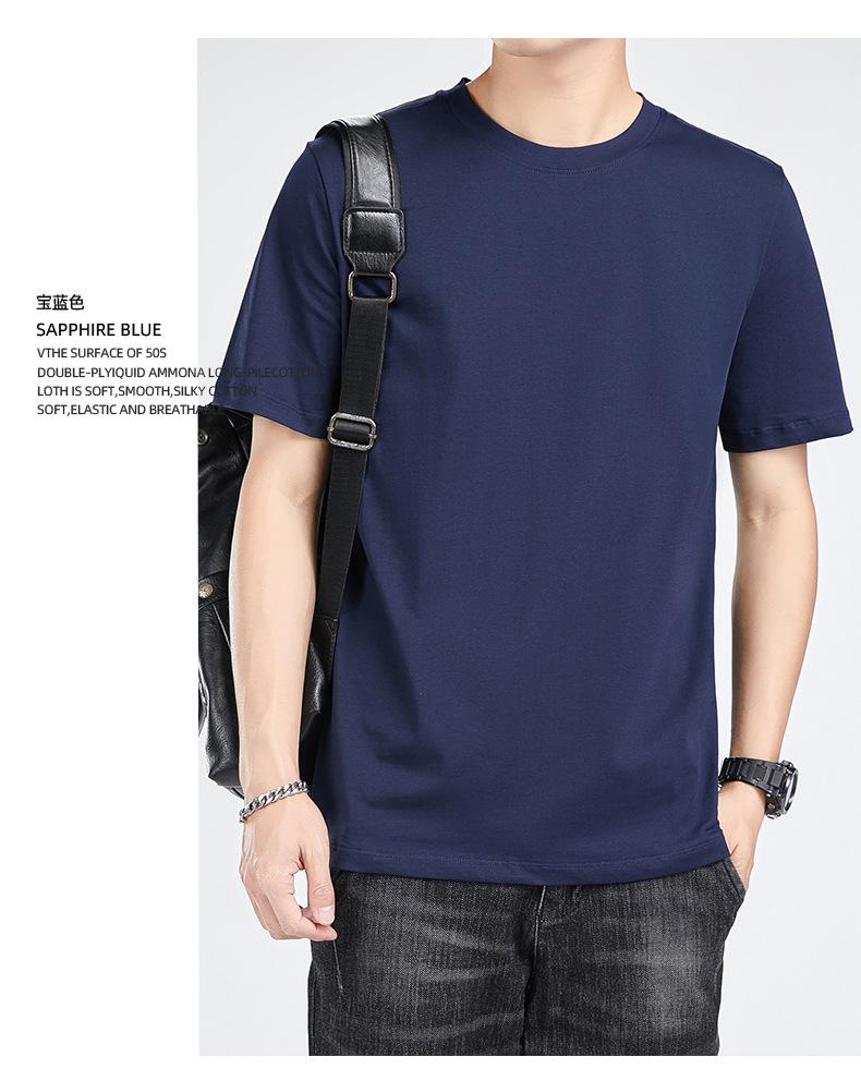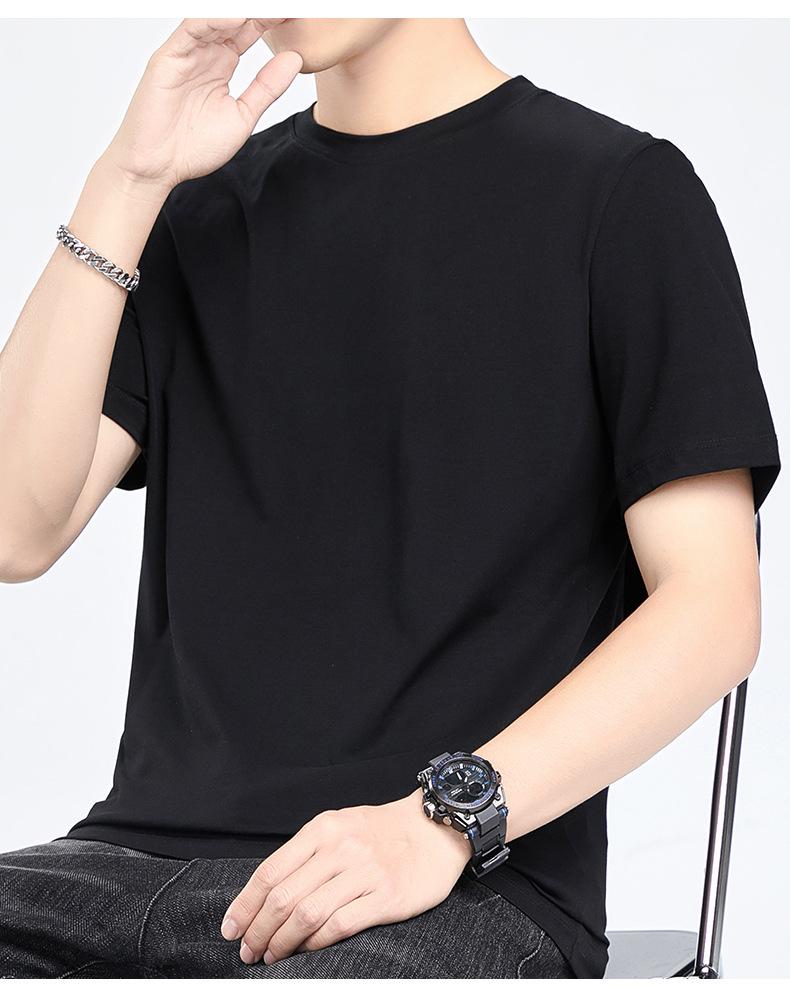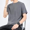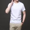 Camiseta de manga corta de algodón mercerizado de seda helada para hombre, cuello redondo de verano, tela fina y sedosa, color puro, informal, blanca.