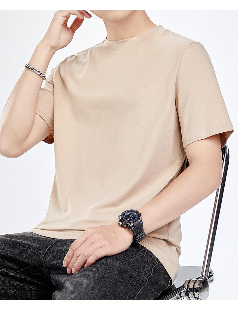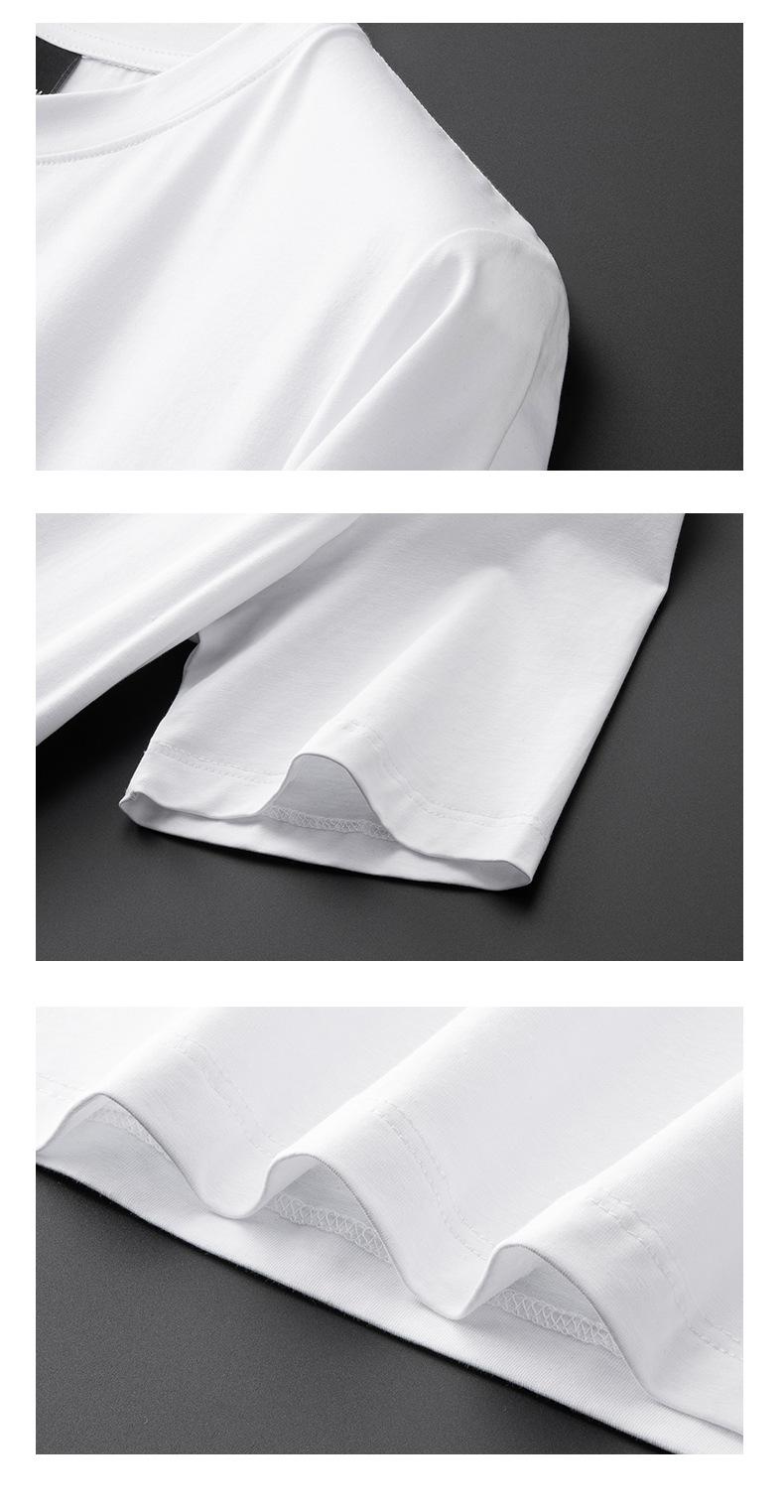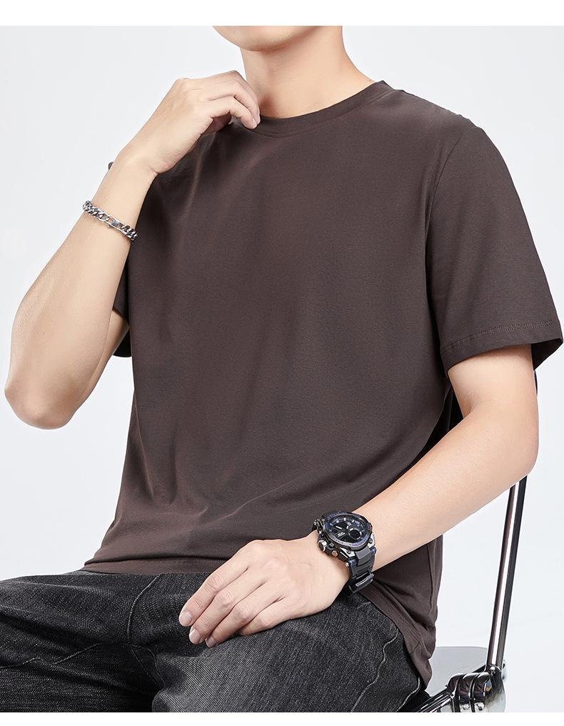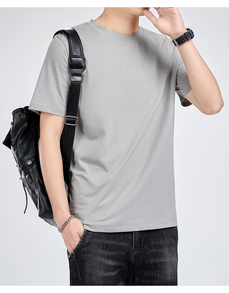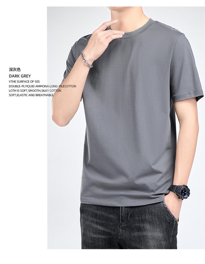Camiseta de manga corta de algodón mercerizado de seda helada para hombre, cuello redondo de verano, tela fina y sedosa, color puro, informal, blanca.