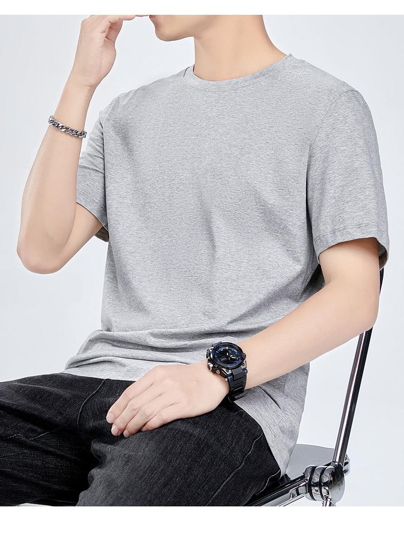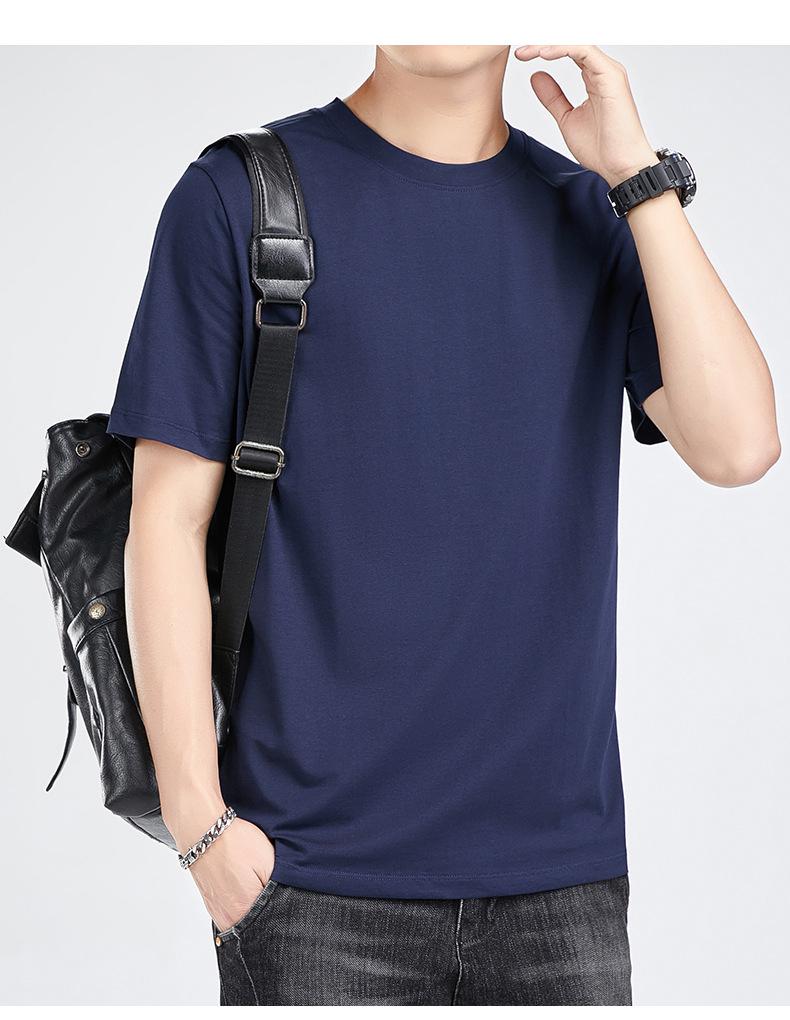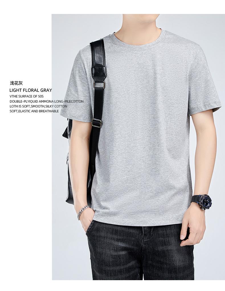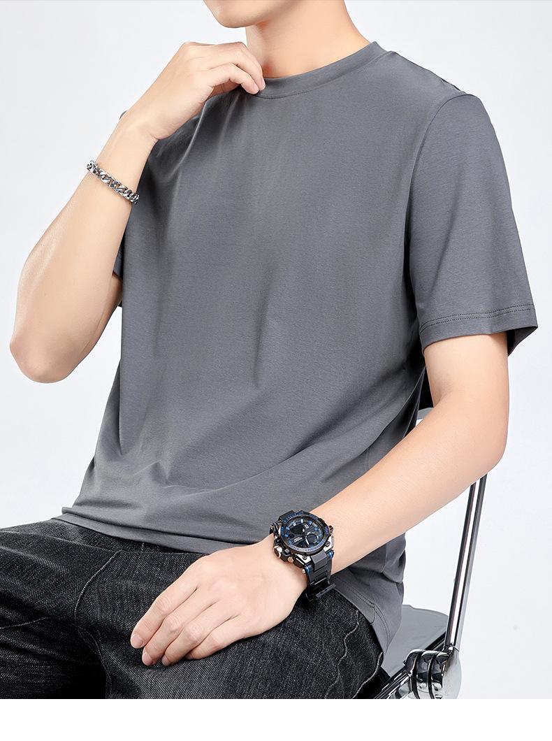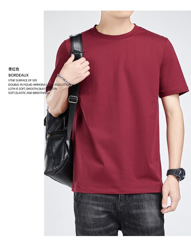 Camiseta de manga corta de algodón mercerizado de seda helada para hombre, cuello redondo de verano, tela fina y sedosa, color puro, informal, blanca.