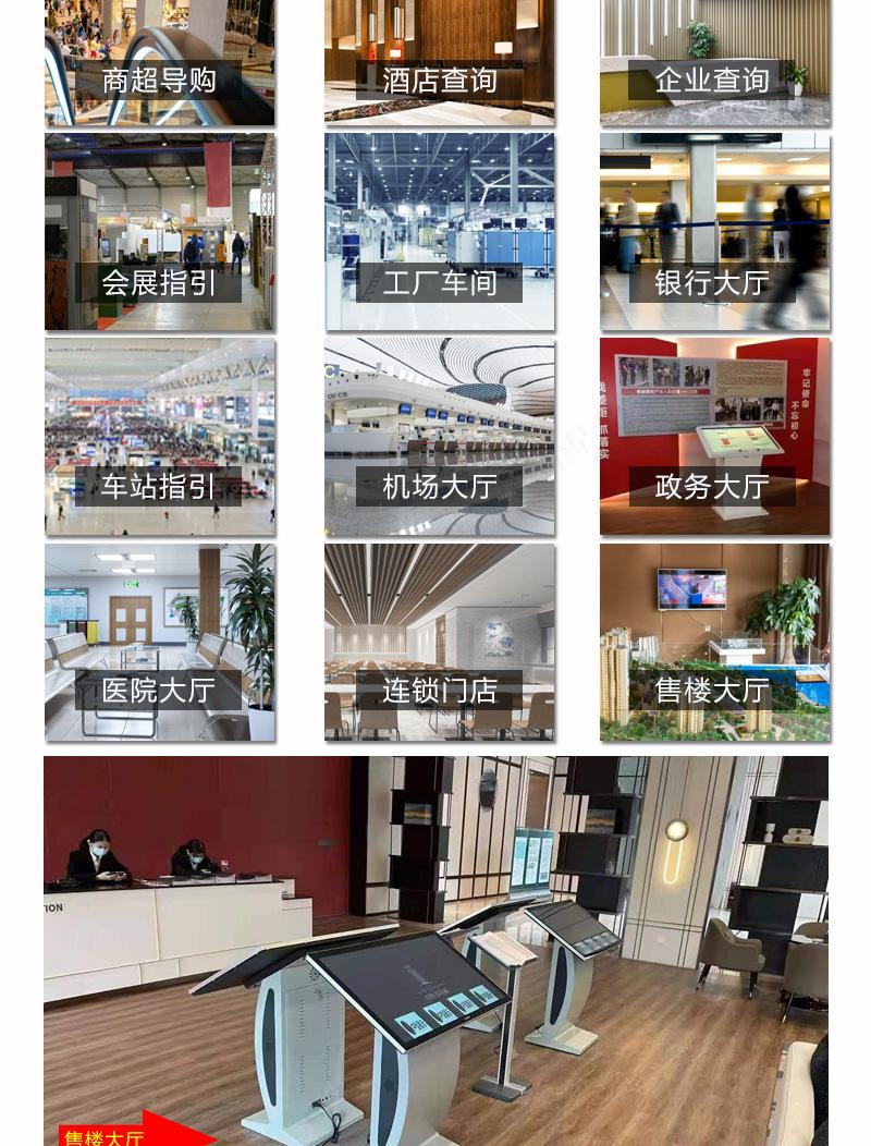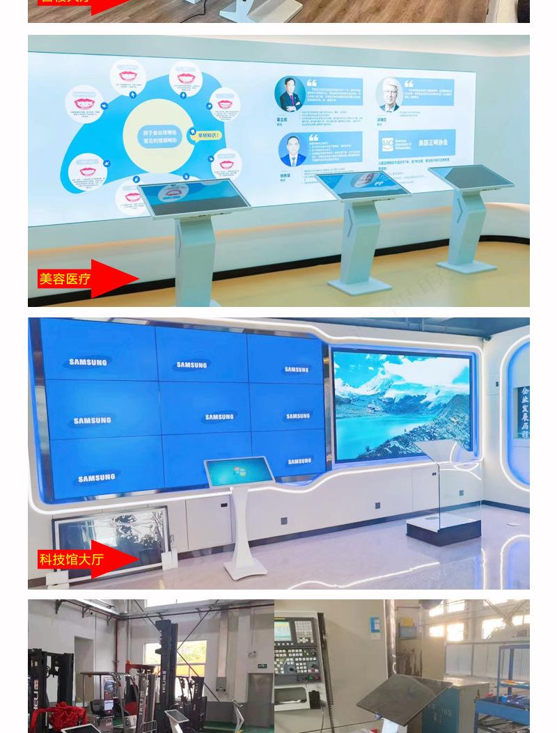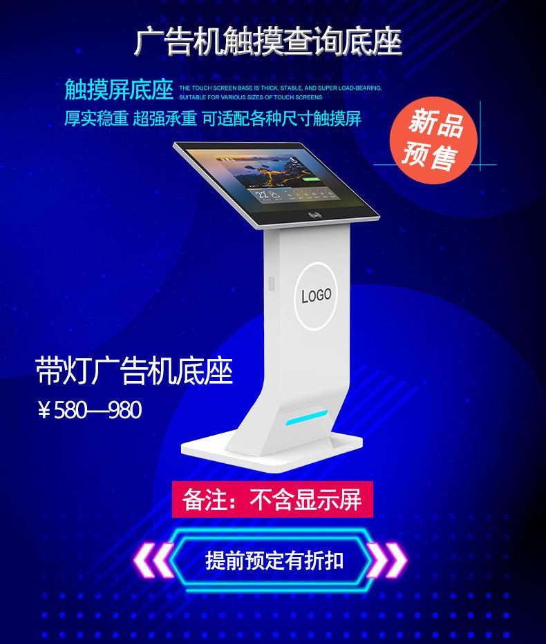 Máquina de publicidad con pantalla táctil de 15,6 a 98 pulgadas, todo en uno, con base horizontal y soporte de base K para cintura de hombre pequeño