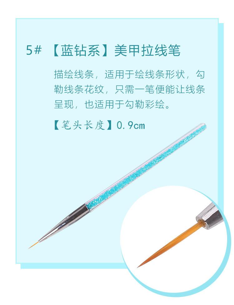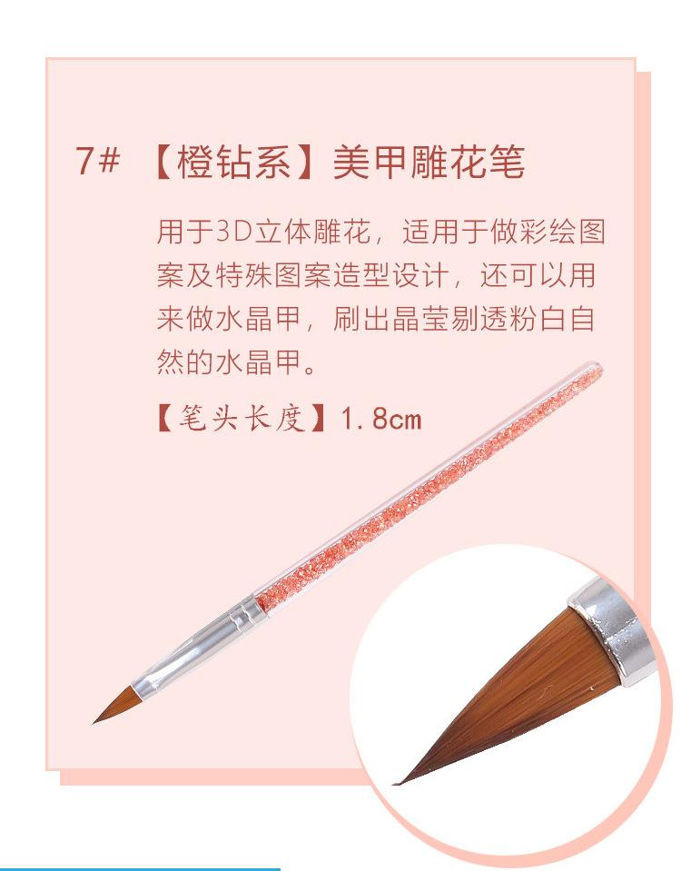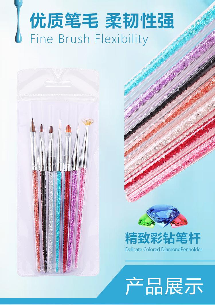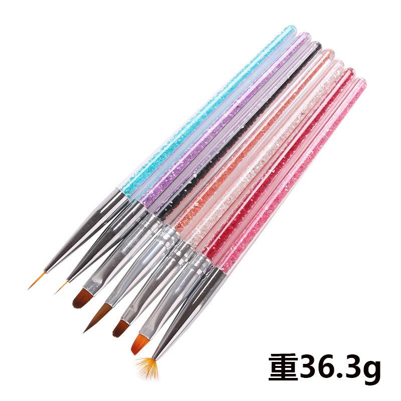 Juego de Pinceles para Manicura Nail Art Cristal con Varilla para Taladro Pluma para Dibujo Difuminado Pincel de Gancho Pincel de Fila Paquete de 7