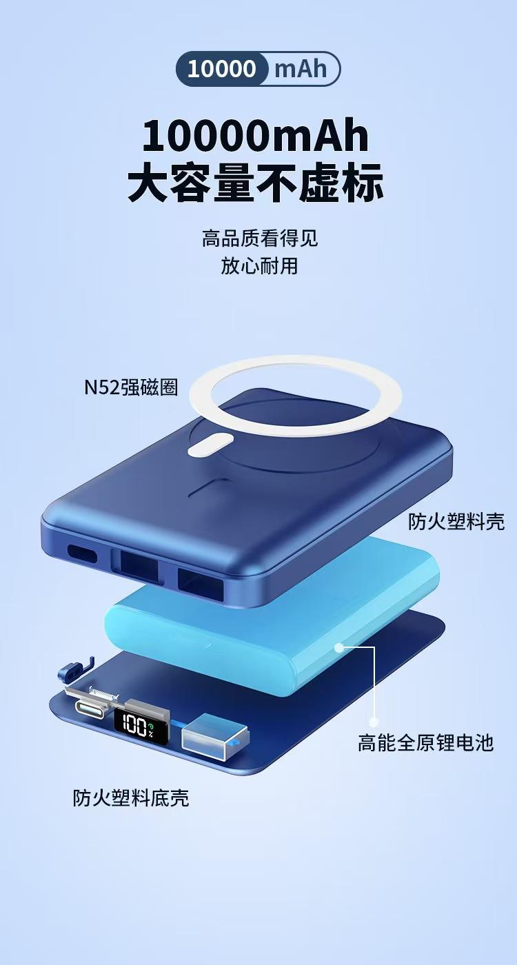 Batería Externa Inalámbrica Magnética Magsafe Cargador de Carga Rápida Gran Capacidad 10000 Mah Batería Externa Portátil