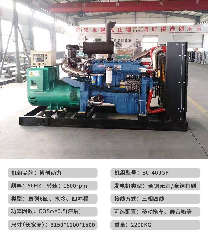 Grupo electrógeno de 400 kW de bajo consumo de combustible, grupo electrógeno de CA trifásico de cuatro hilos, grupo electrógeno diésel Weifang de ahorro de energía