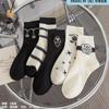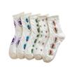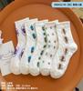 Calcetines nuevos de otoño e invierno para mujer, calcetines de algodón hasta media pantorrilla, estilo universitario, calcetines casuales de primavera, versátiles, lindas flores, fábrica al por mayor