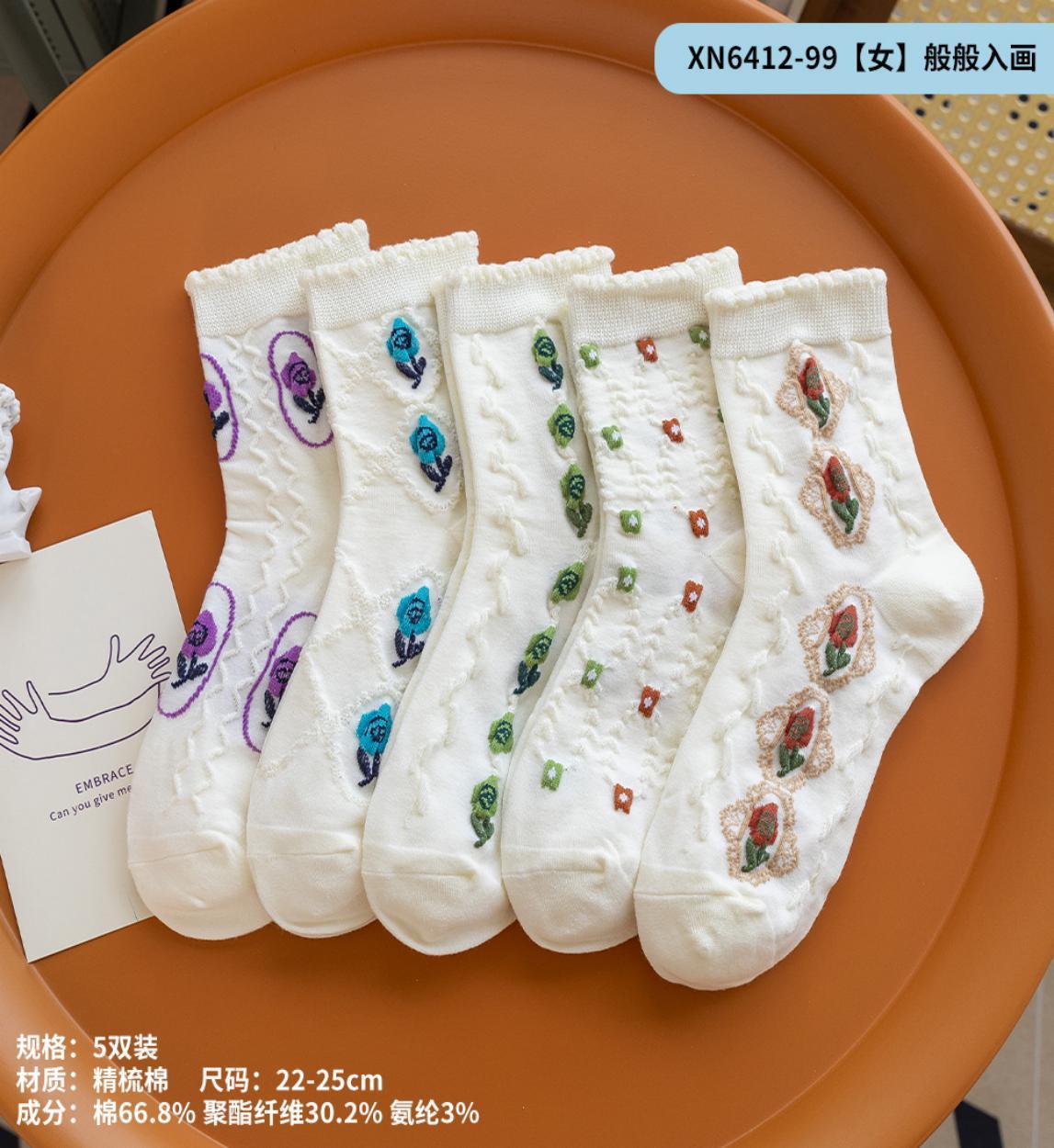 Compra Calcetines nuevos de otoño e invierno para mujer, calcetines de algodón hasta media pantorrilla, estilo universitario, calcetines casuales de primavera, versátiles, lindas flores, fábrica al por mayor al por mayor en Joom.pro