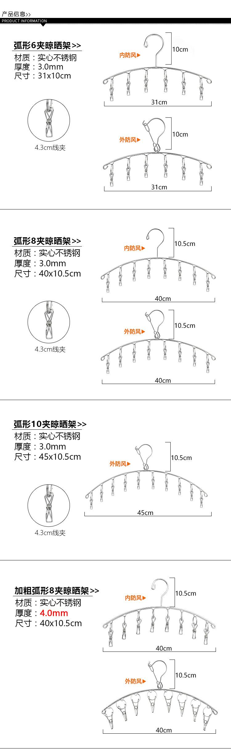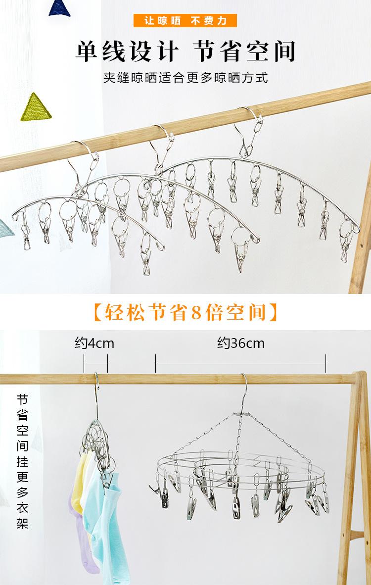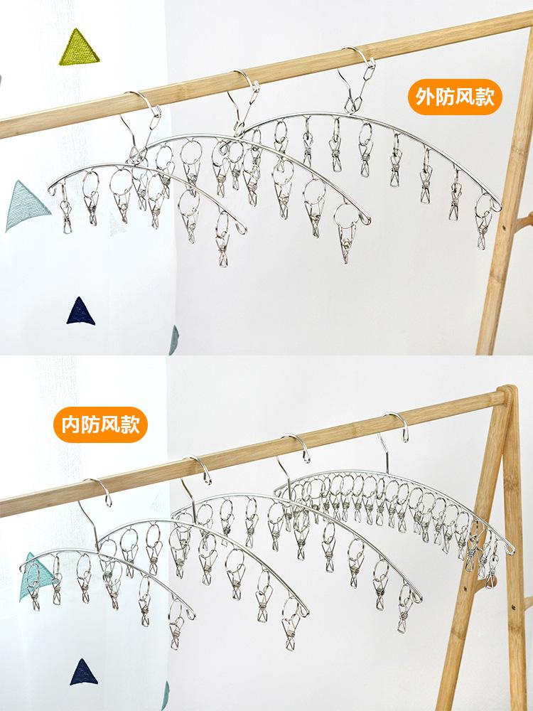 Tendedero curvo de acero inoxidable para ropa, tendedero para ropa de uso doméstico, percha, pinza para ropa, calcetines, ropa interior y calcetines.