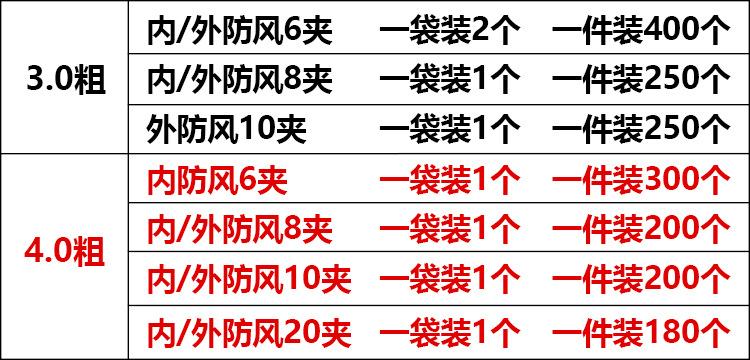 3.0 line outside the wind 20 clip, 4.0 thick outer windproof 20 clip, 4.0 thick inner windproof 20 clip, 3.0 t...