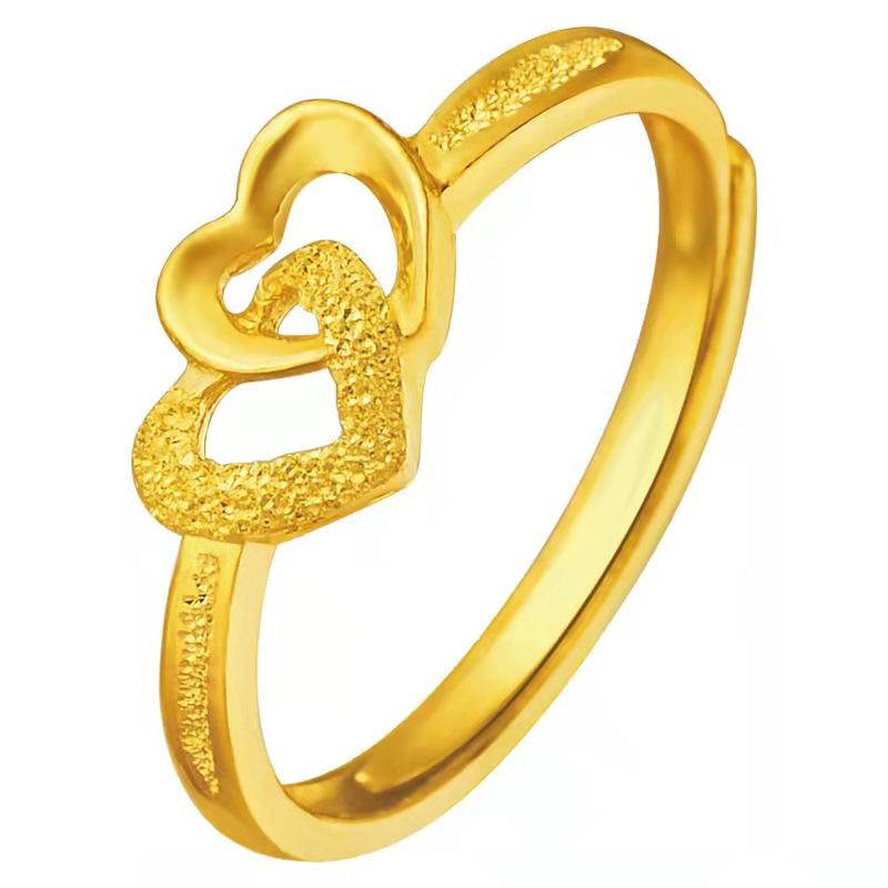 Anillo Vietnamita para Mujer con Doble Corazón Chapado en Oro, Popular en Pinduoduo, Moda Coreana y Japonesa Anillo Abierto para Mujer con Corazón Oro Rosa