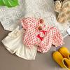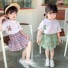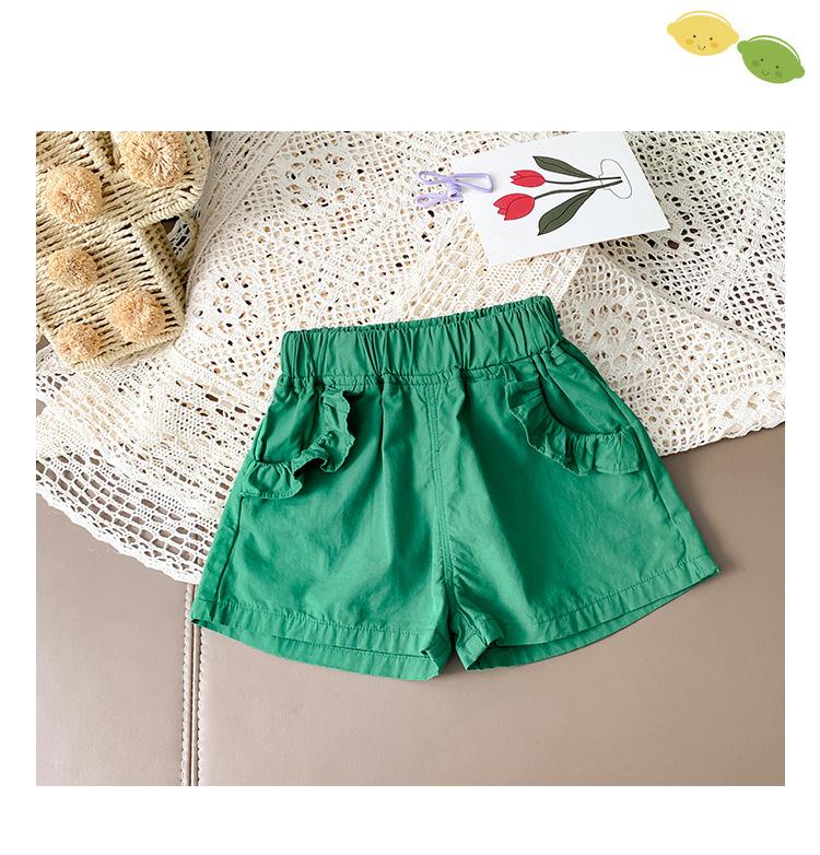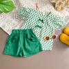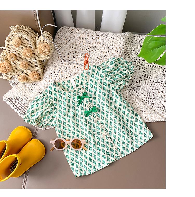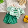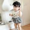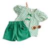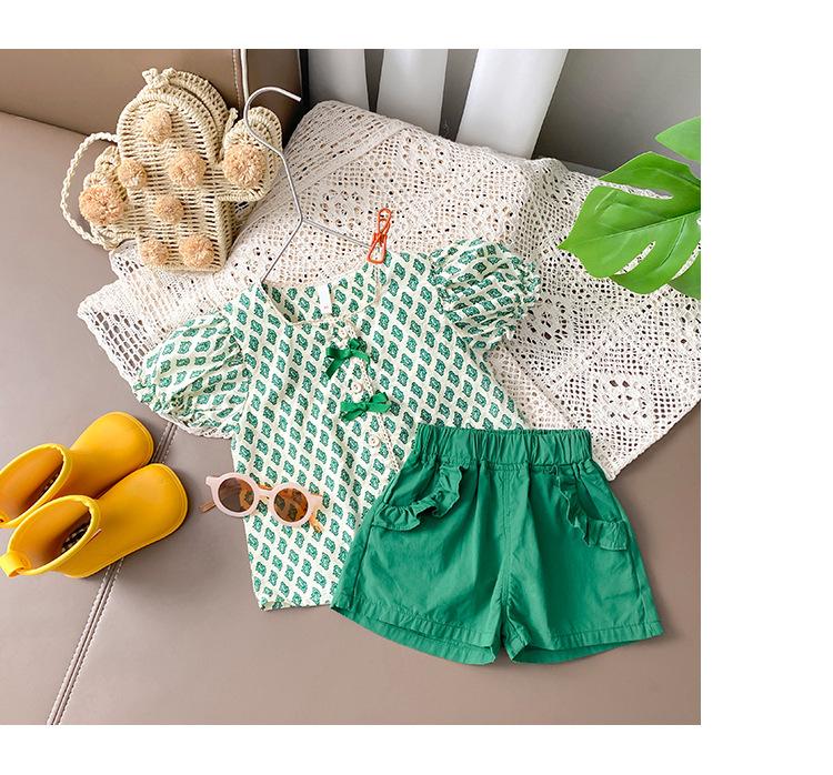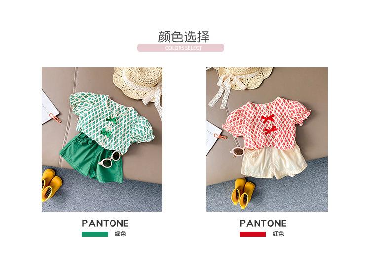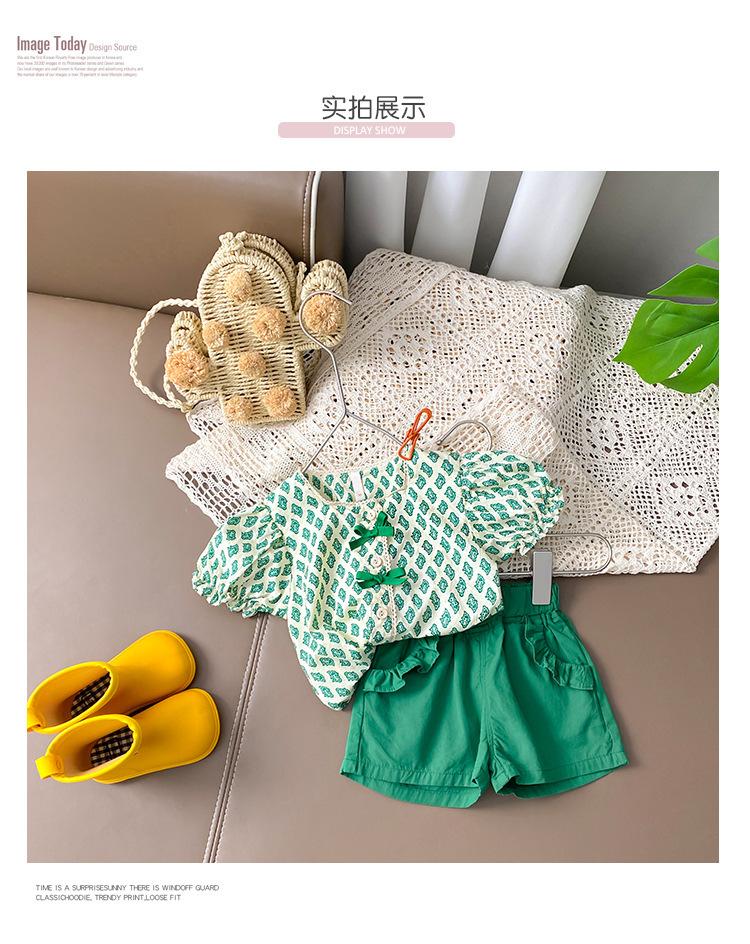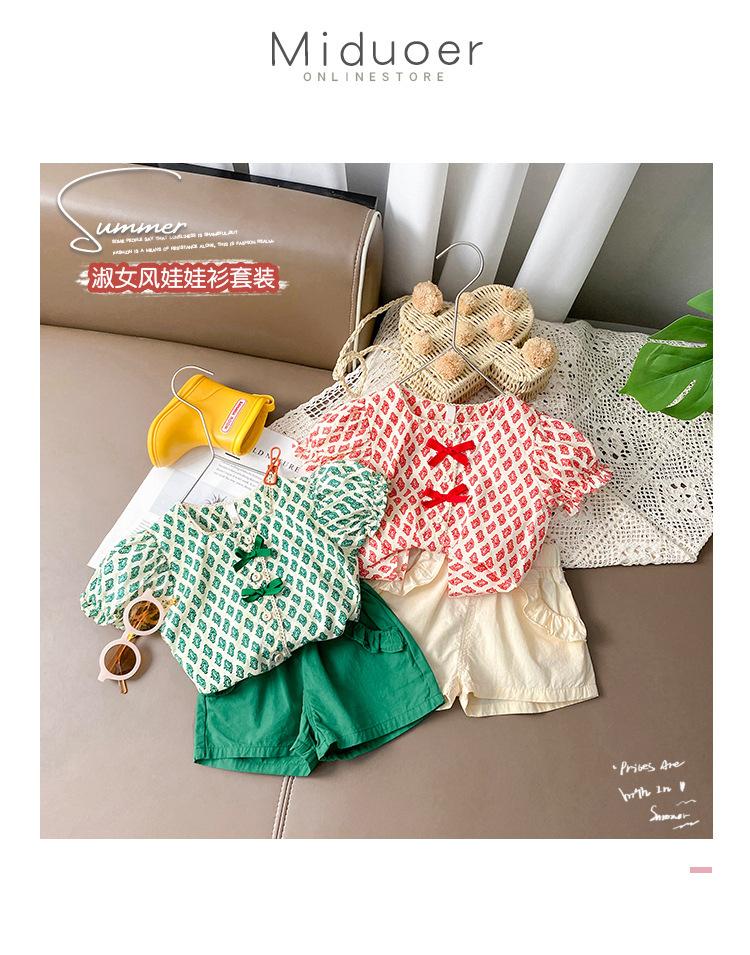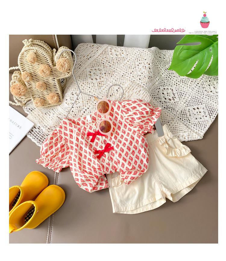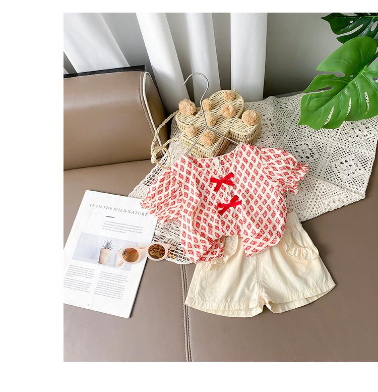 Traje de verano para niñas Bebé en línea Popular Estilo extranjero Infantil Personalizado Marca de moda Estilo coreano Lazo Camisa de manga abullonada Shorts