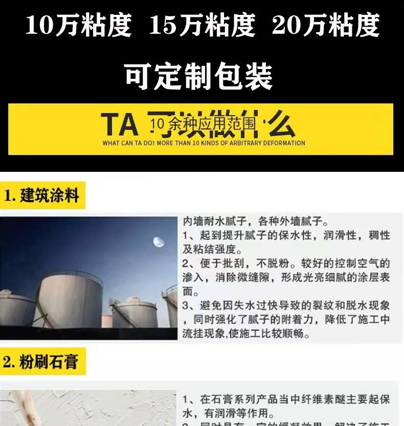 200000 viscosity, 150000 viscosity, 100000 viscosity, 50000 viscosity, 30000 viscosity, 0.1kg, Instant cellulose
