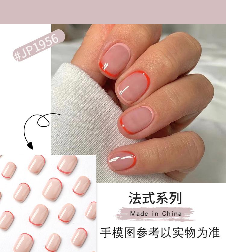 Venta al por mayor de uñas cortas, sencillas, rojas y amarillas, francesas, para usar uñas, uñas, uñas, arte de uñas, producto terminado, arte de uñas desmontable.