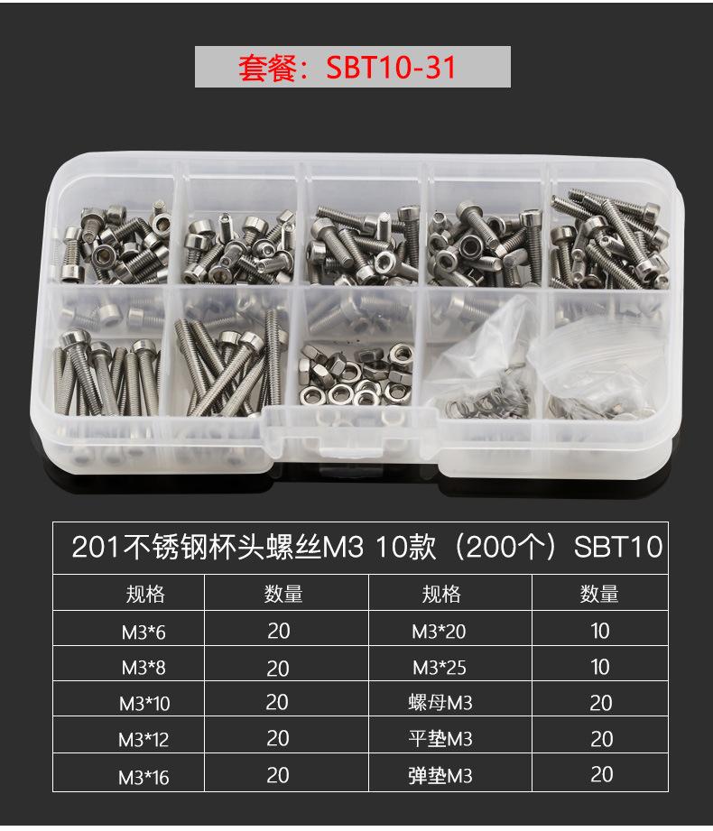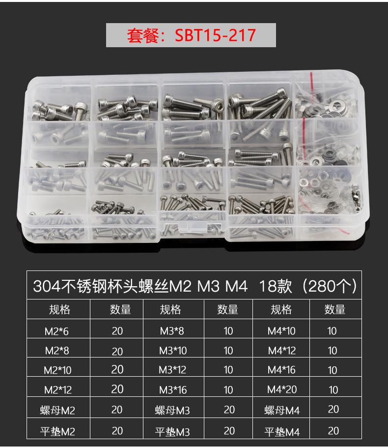 Juego de tornillos de cabeza cilíndrica de acero inoxidable con hexágono interior, combinación de tornillos Daquan, tuercas en caja M2M3M4