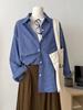 Otoño 2024, nuevas blusas europeas y americanas, cárdigan de solapa delgada, camisa de moda, camisa de manga larga en blanco y negro, camisa de talla grande para mujer