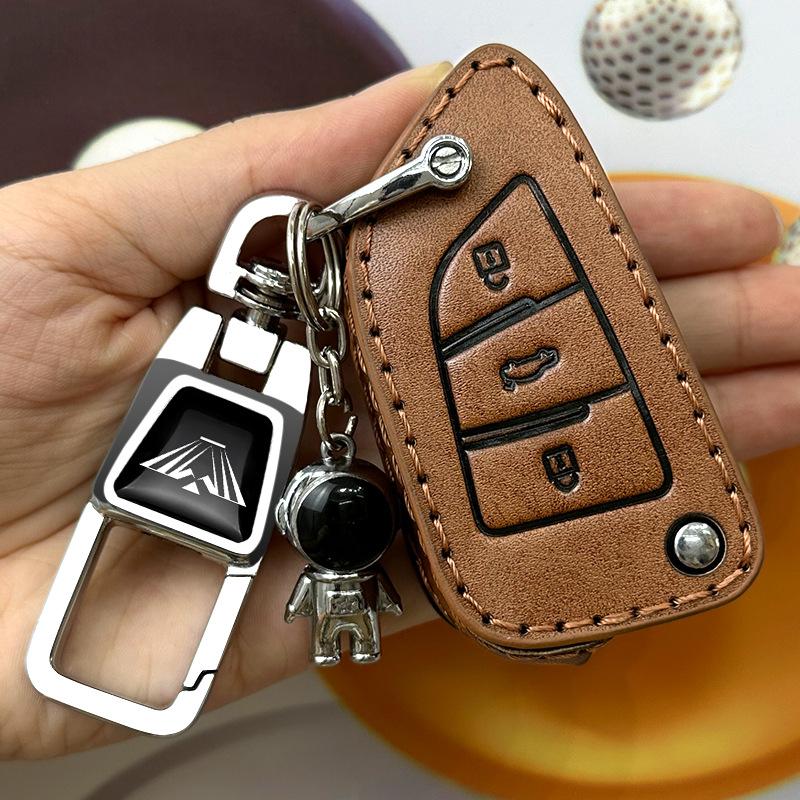 Modified B1 [Brown] leather case + keychain + metal silver astronaut