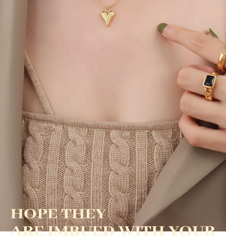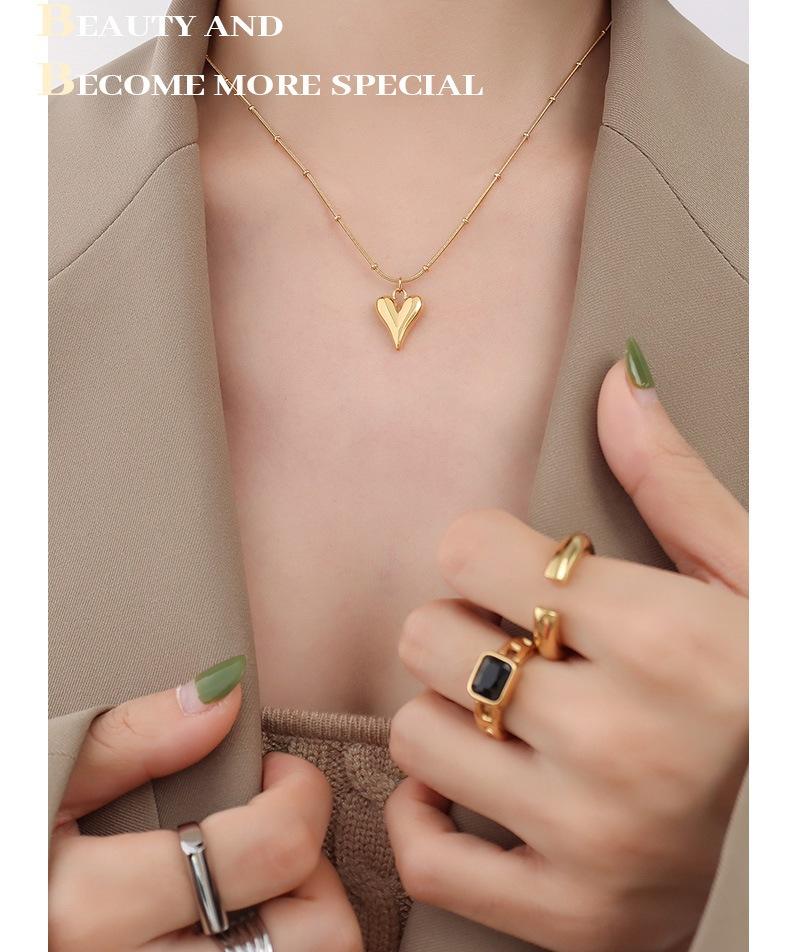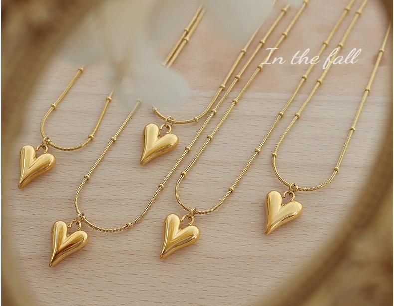 Collar largo con colgante de amor, estilo europeo y americano, con cadena de clavícula chapada en oro puro de 18 quilates y acero de titanio, P575.