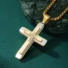 Collar con cruz de piedra con incrustaciones de arena, de acero dorado con borde biselado estampado, original de Europa y América, para hombre, colgante de ropa sencillo para hombre