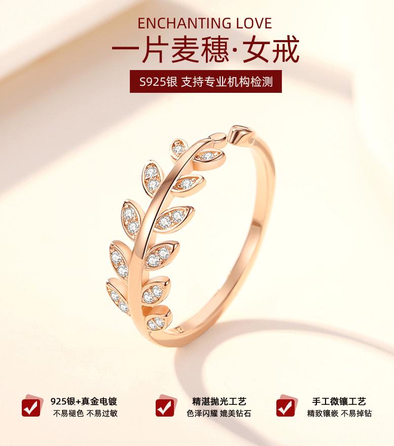 Pequeño anillo de oreja de trigo S925 de plata pura fresca, joyería para mujer, estilo coreano, anillo de estilo ins, diseño de nicho, sentido de celebridad de Internet, mismo estilo