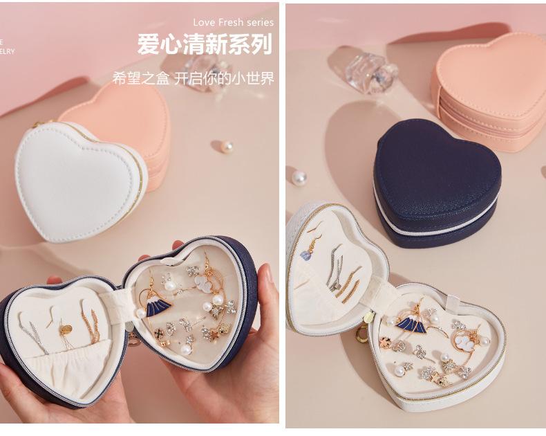 Caja de Joyería en Forma de Corazón, Portátil para Viaje, Aretes, Collar, Caja de Almacenamiento de Joyería, Caja de Regalo de Joyería, Macaron