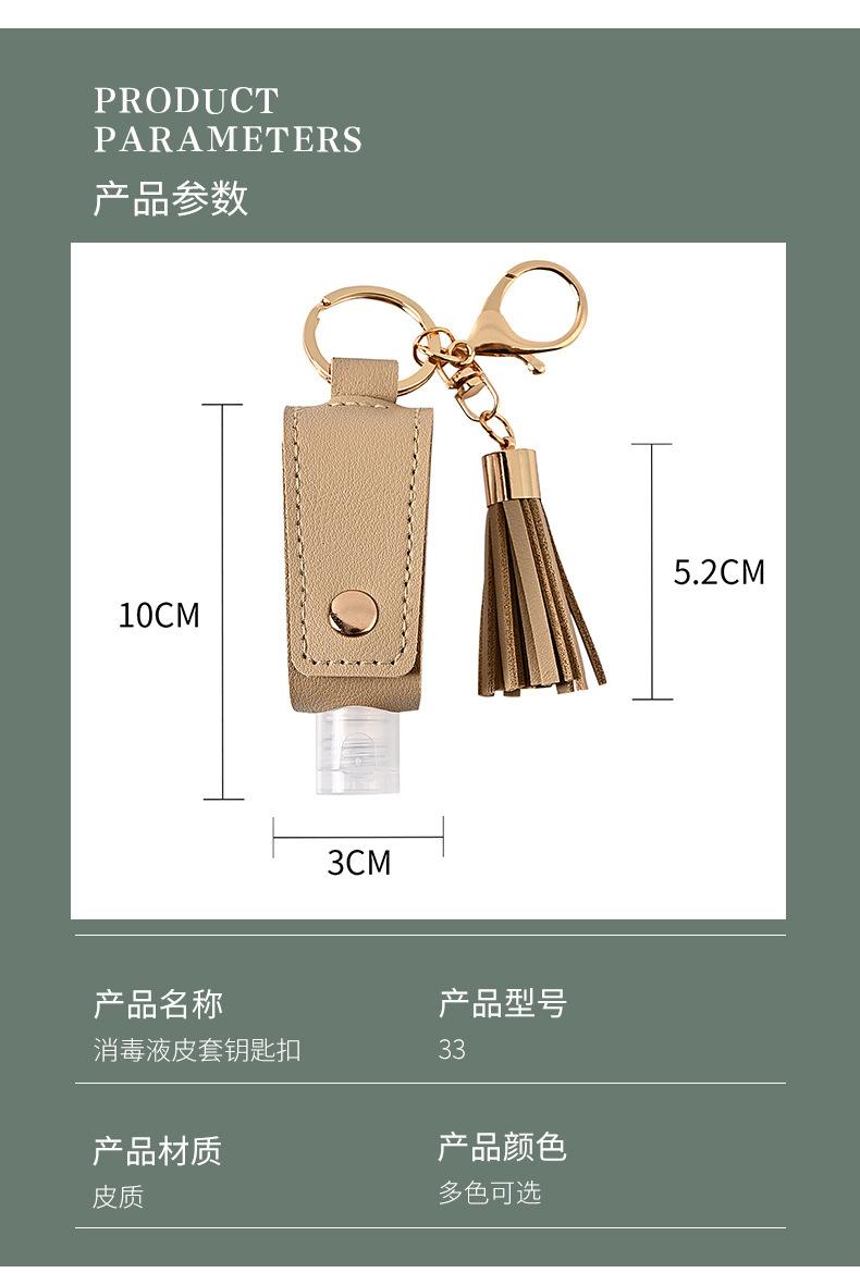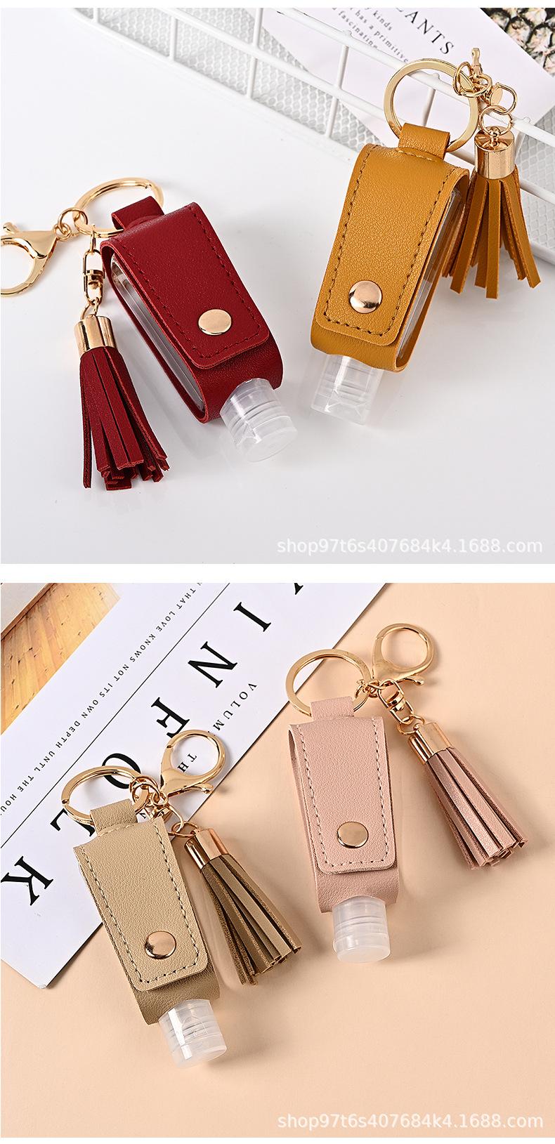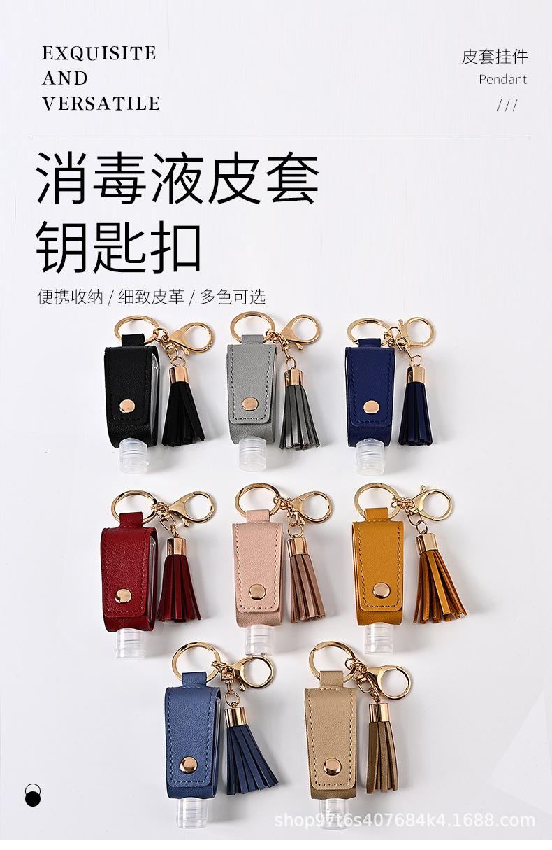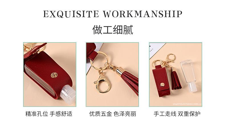 Llavero Estuche de Cuero con Borla para Desinfectante de Manos Portátil Agua Desinfectante Estuche de Cuero PU Llavero Colgante de Bolsa Fabricante Venta al por Mayor