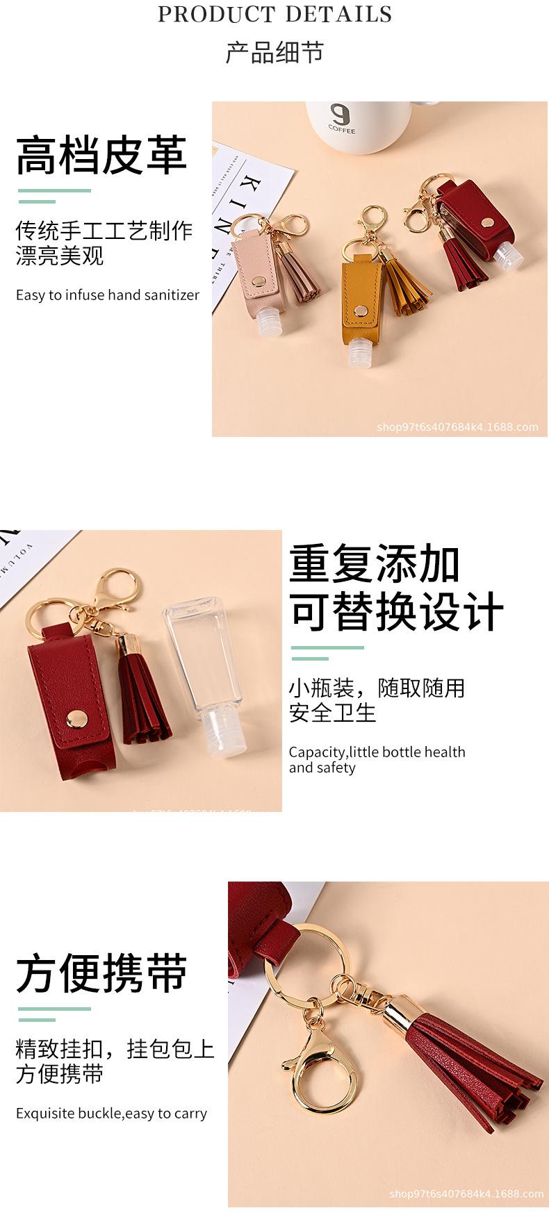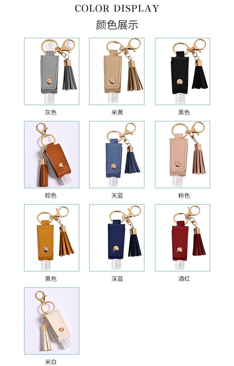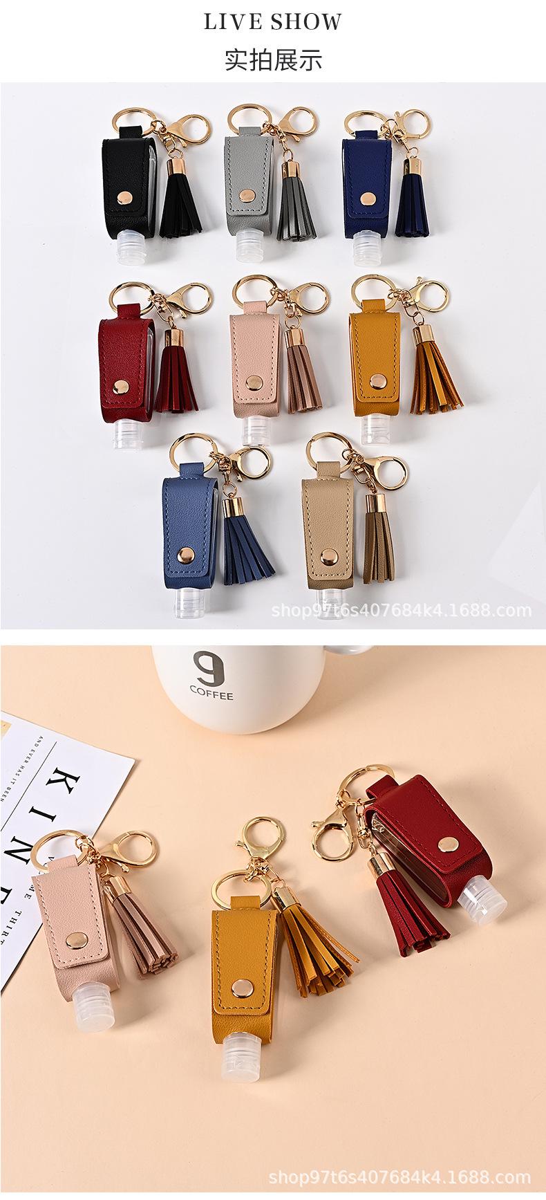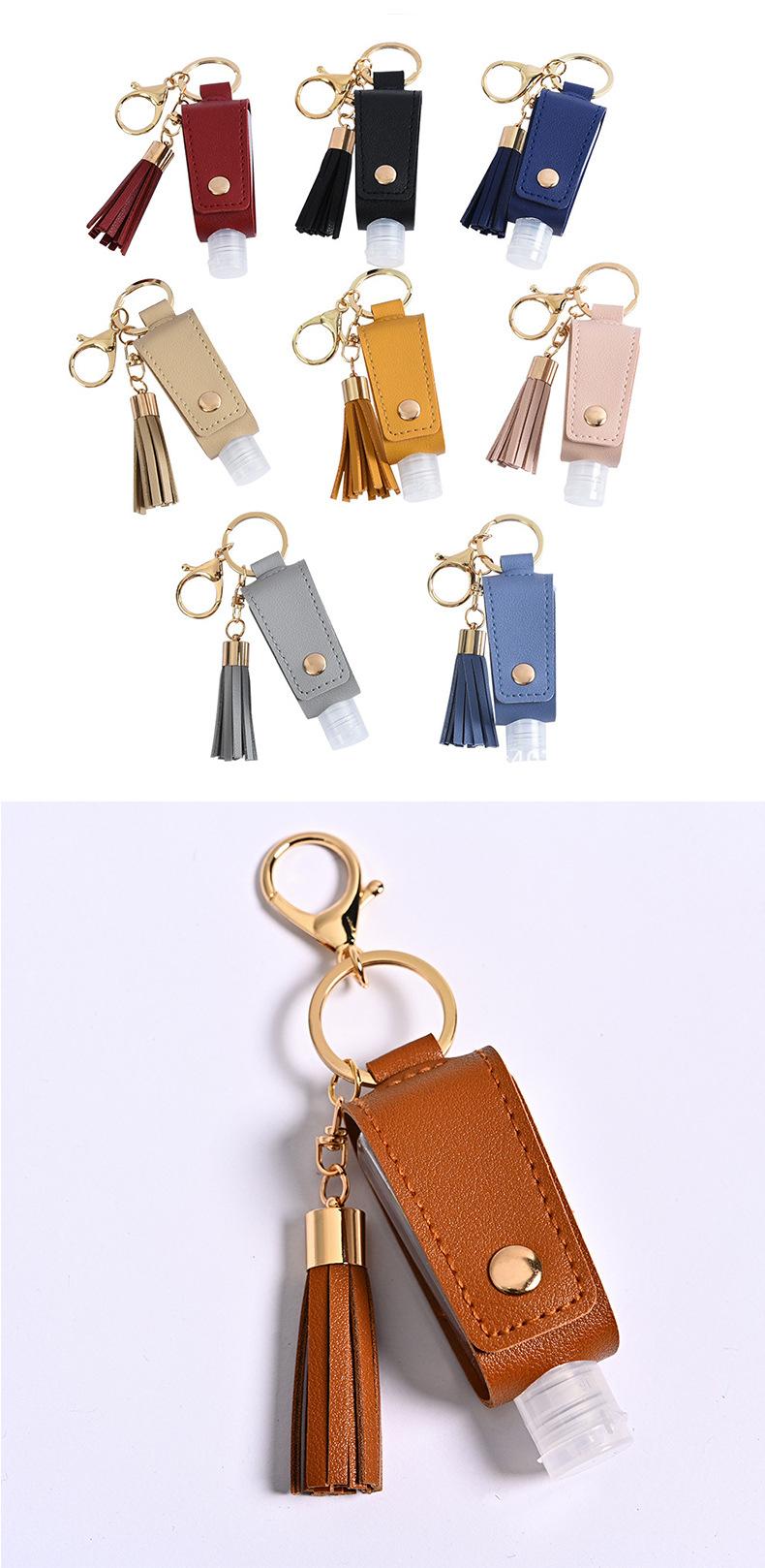 Llavero Estuche de Cuero con Borla para Desinfectante de Manos Portátil Agua Desinfectante Estuche de Cuero PU Llavero Colgante de Bolsa Fabricante Venta al por Mayor