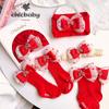 Nuevo gorro con orejas de conejo y estampado europeo y americano para bebé, gorro indio anudado, gorro multifuncional 2 en 1 para bebé.