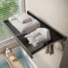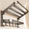 Toallero de baño negro sin perforaciones de doble capa plegable para almacenamiento de toallas de baño para baño, estante de almacenamiento para inodoro