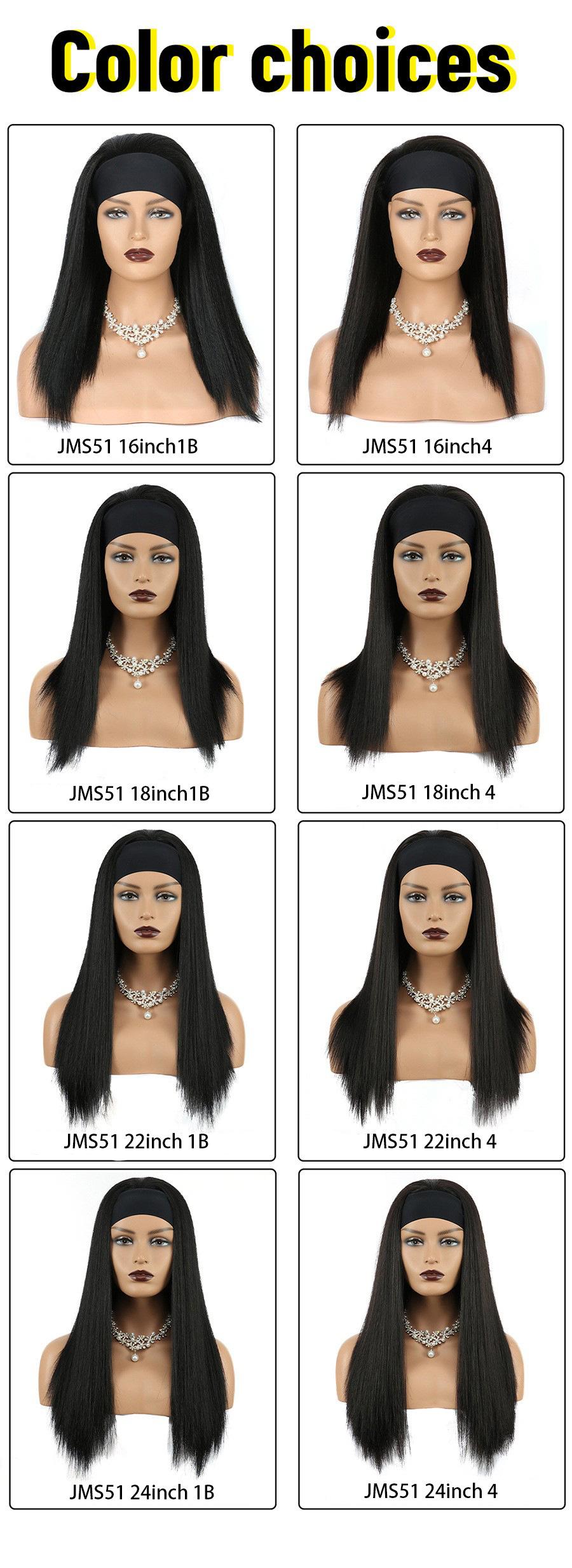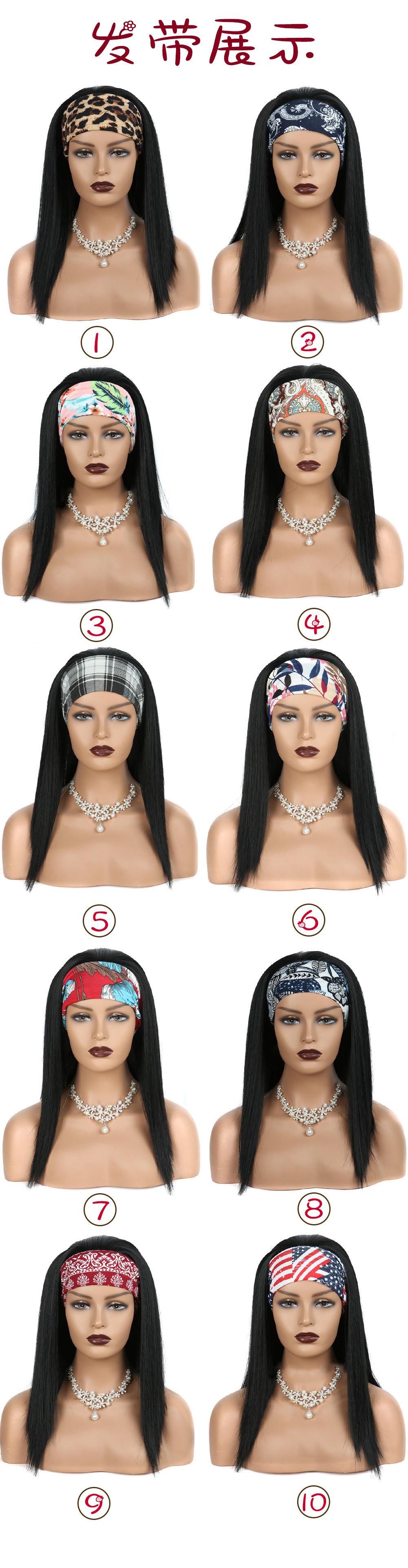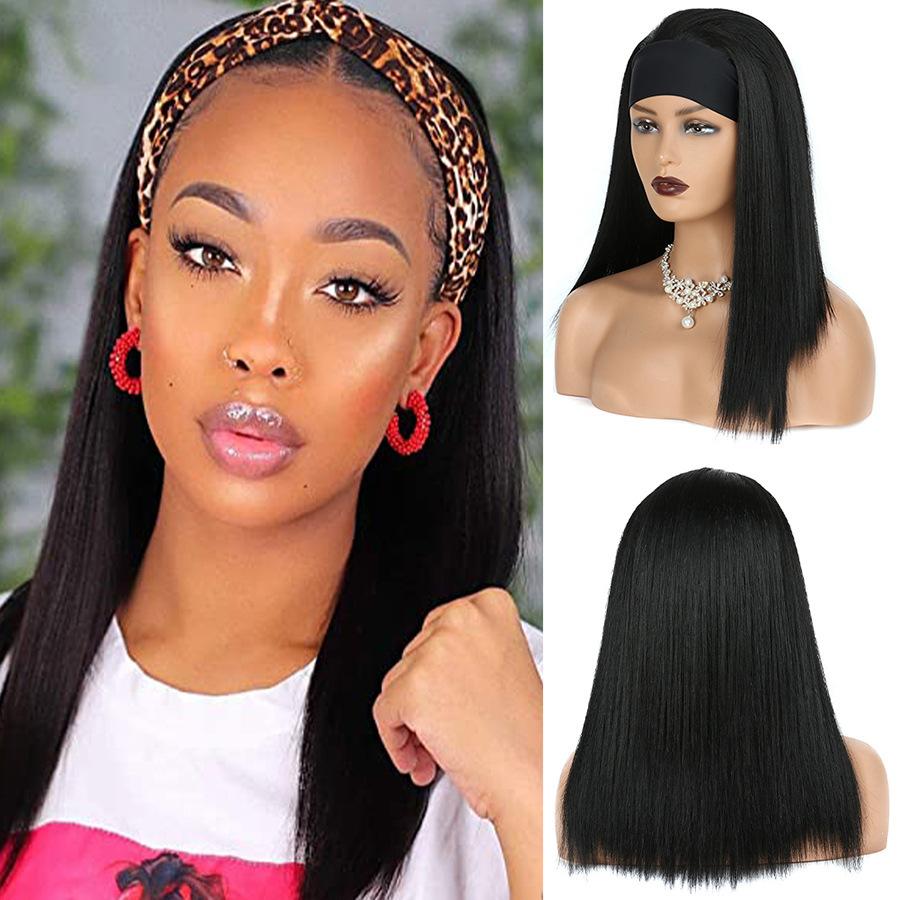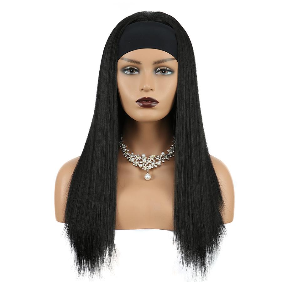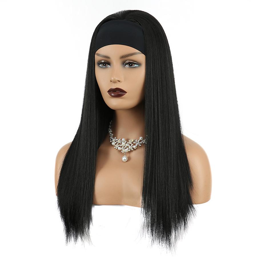 Pelucas 2024 Europeas y Americanas Tocado Bufanda Diadema Negro Señoras Mediano Largo Cabello Lacio Pelucas Fabricante Venta al por Mayor