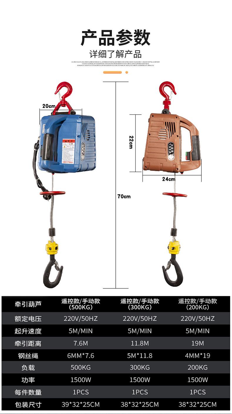 Polipasto eléctrico Weifang de 220 V para elevación y tracción, grúa pequeña doméstica con control remoto inalámbrico, polipasto eléctrico portátil