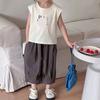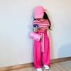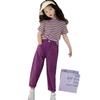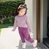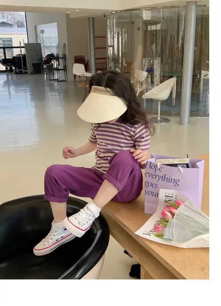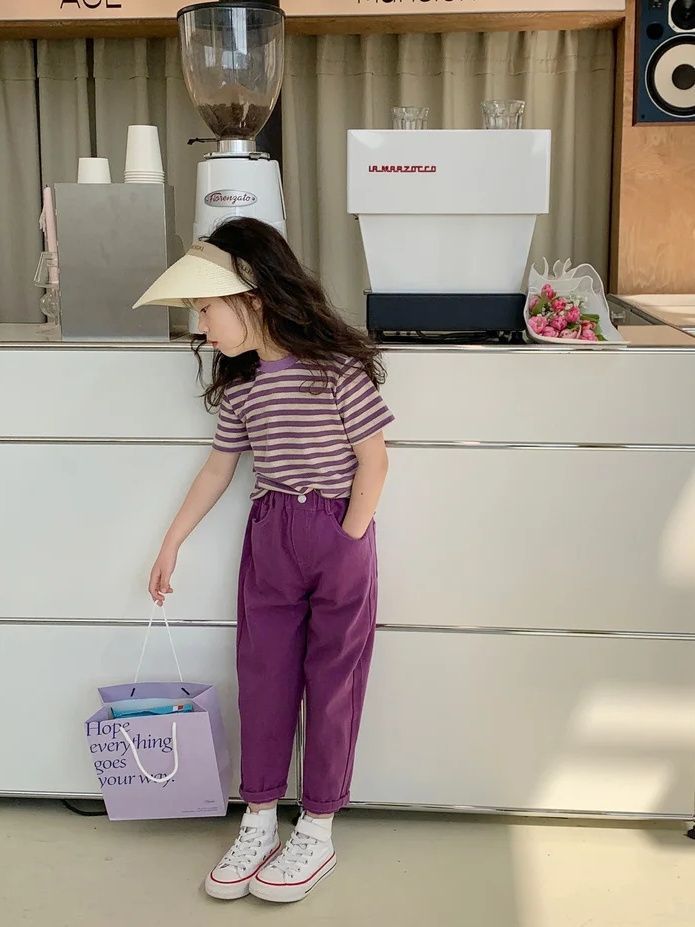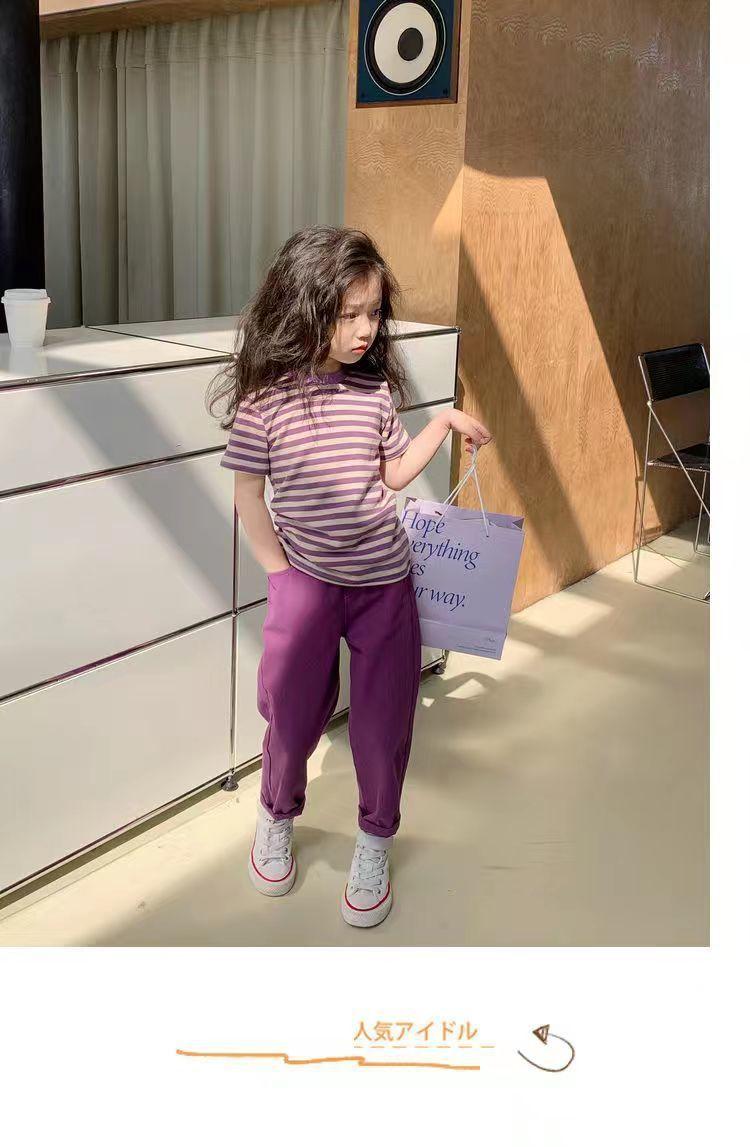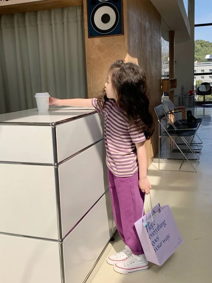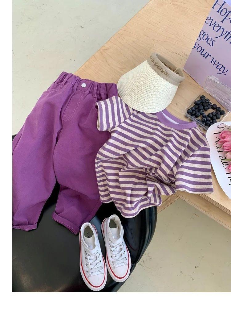 Traje de dos piezas de verano para niñas, estilo occidental, con personalidad infantil, estilo coreano moderno, camiseta a rayas, pantalones casuales.