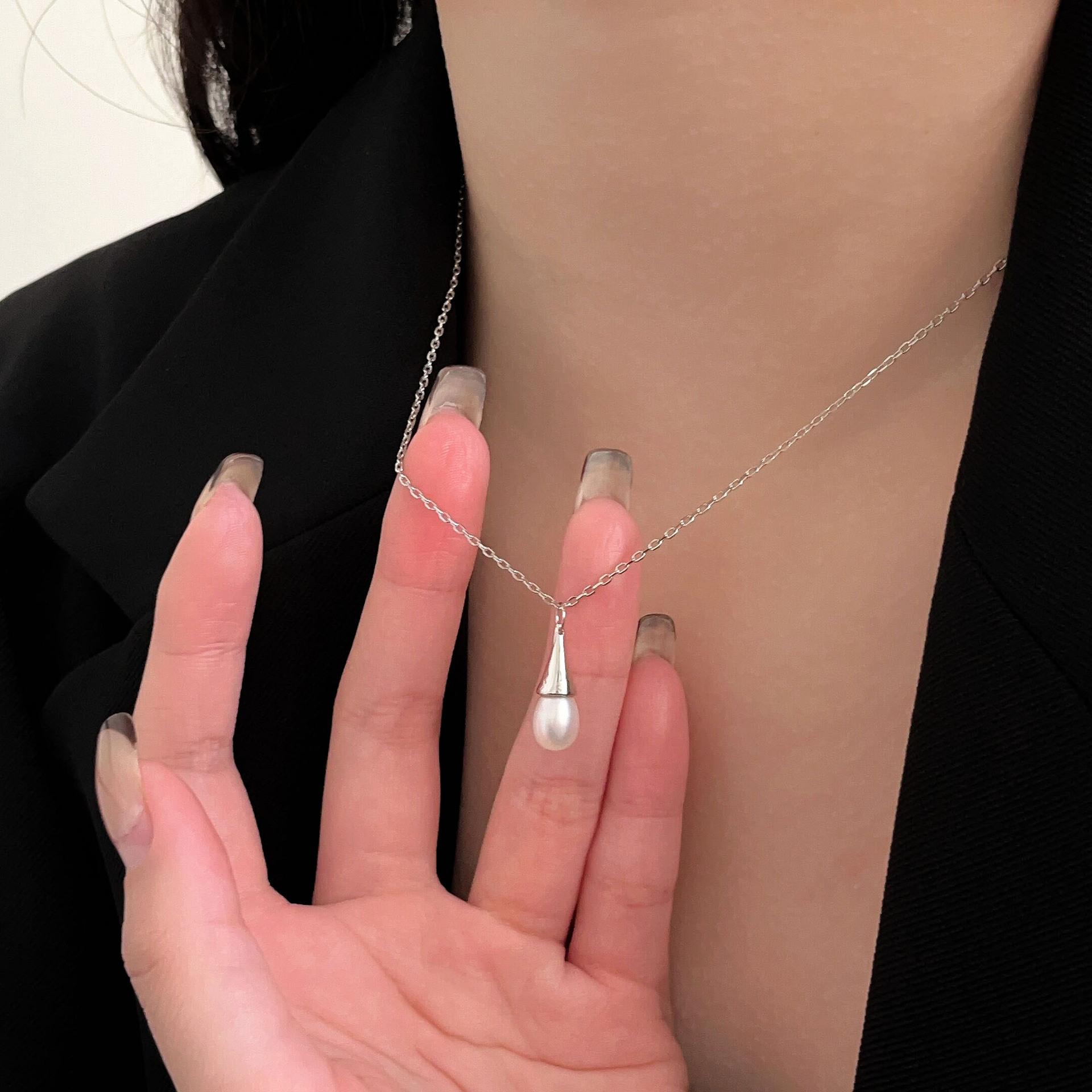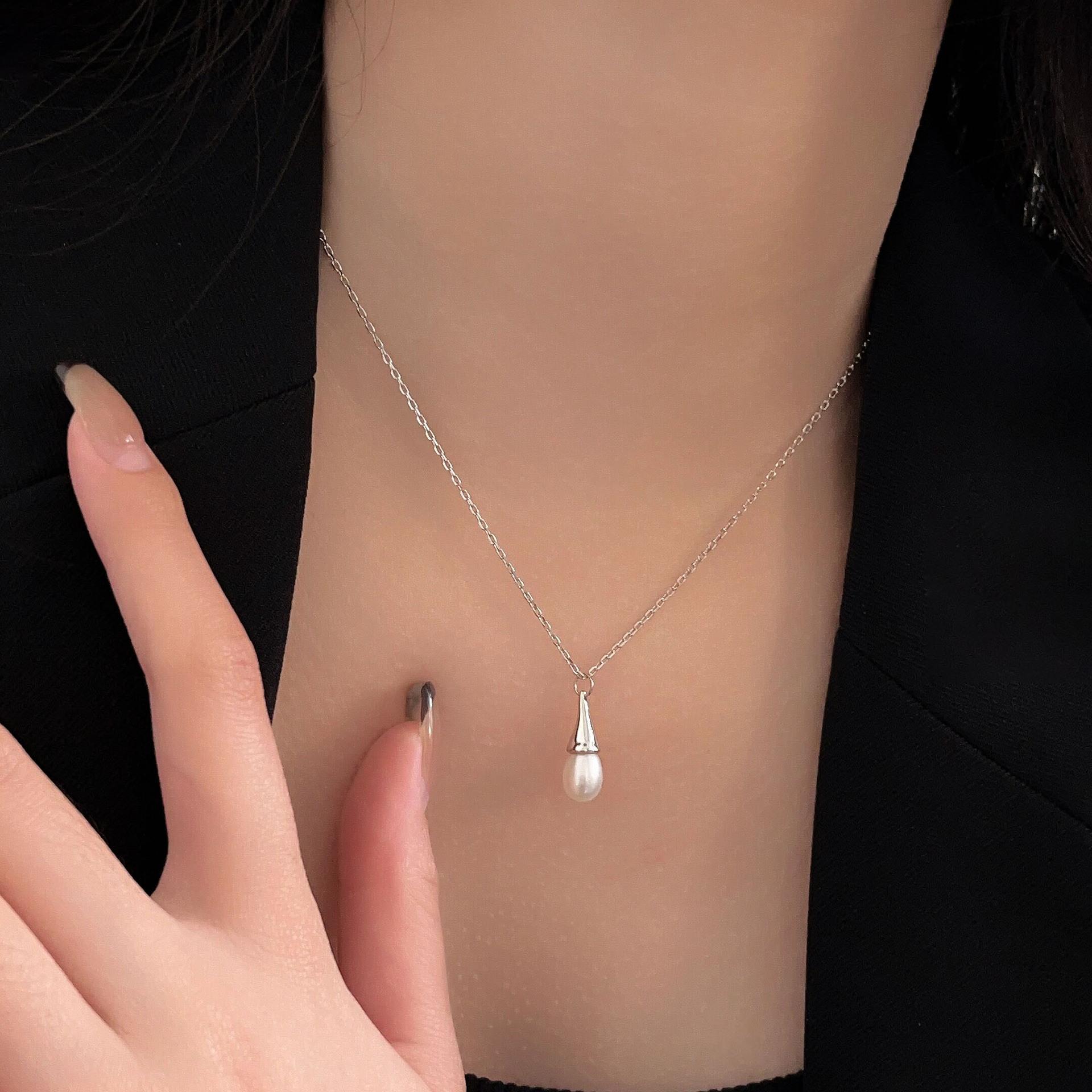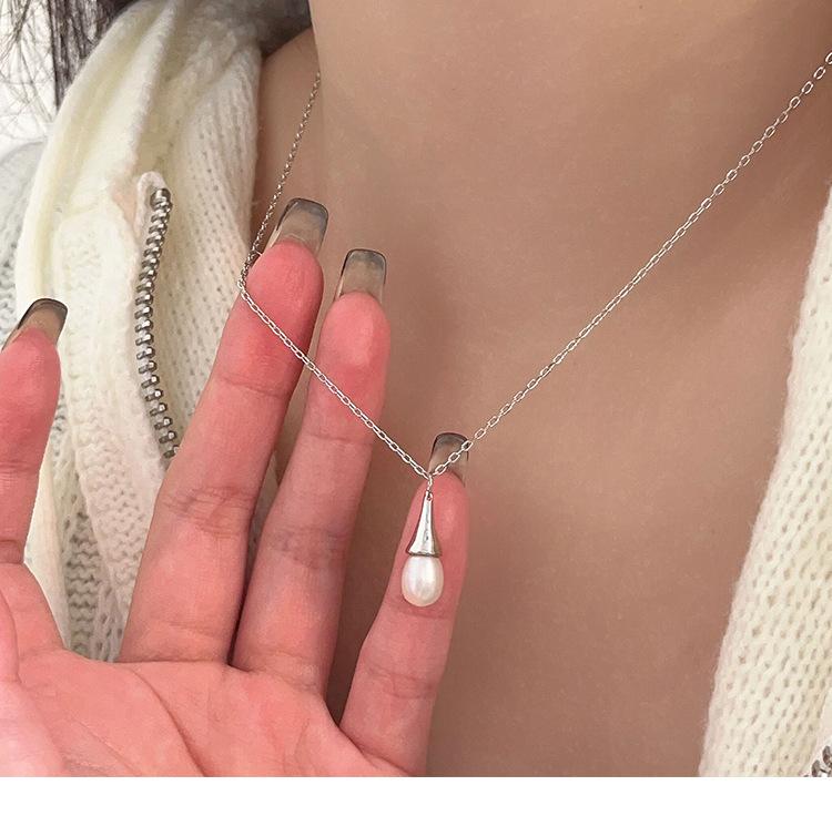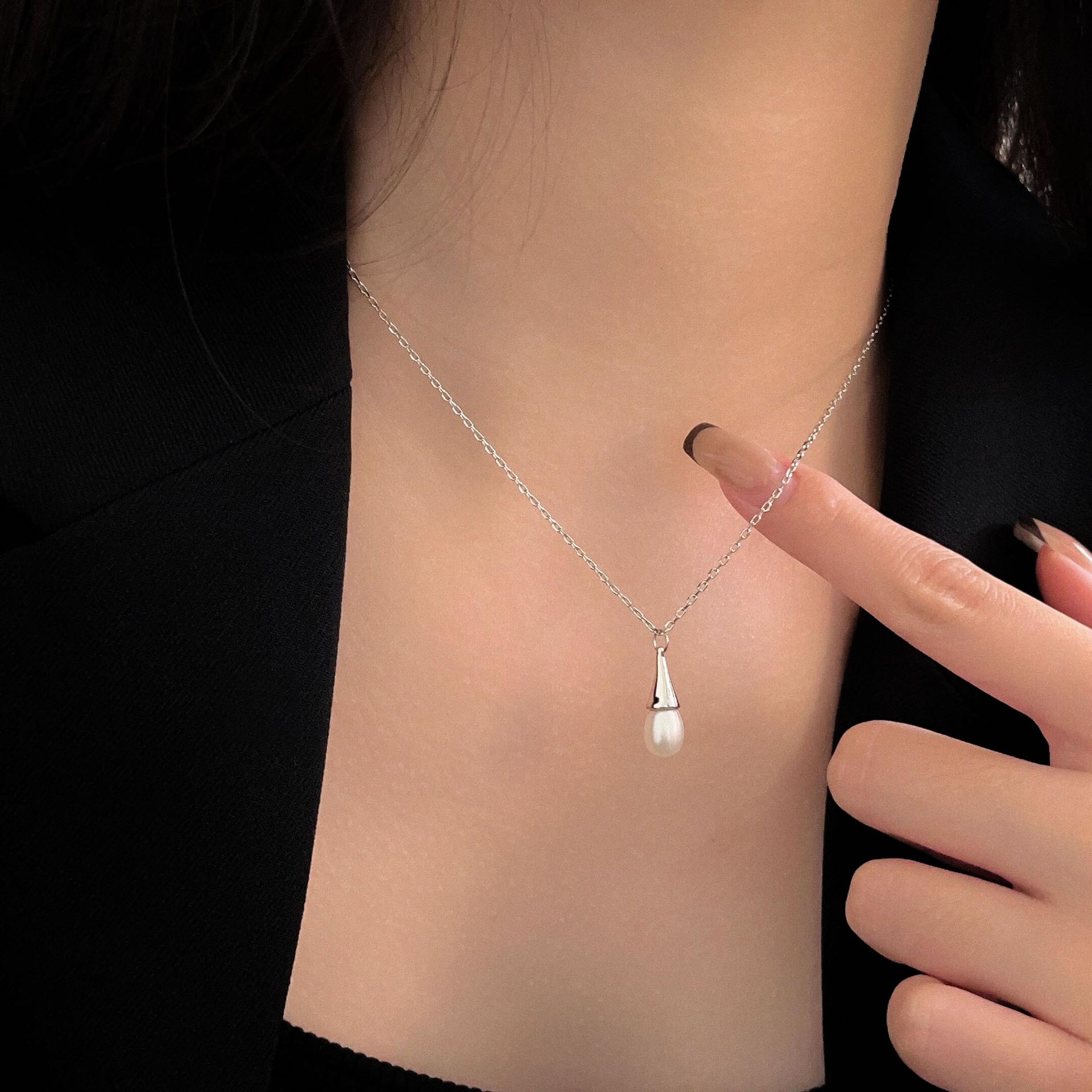 Collar con colgante de perla única de plata esterlina Ruitai s925 con pequeñas costuras, cadena de clavícula ligera de lujo de alta calidad y combinable con todo.