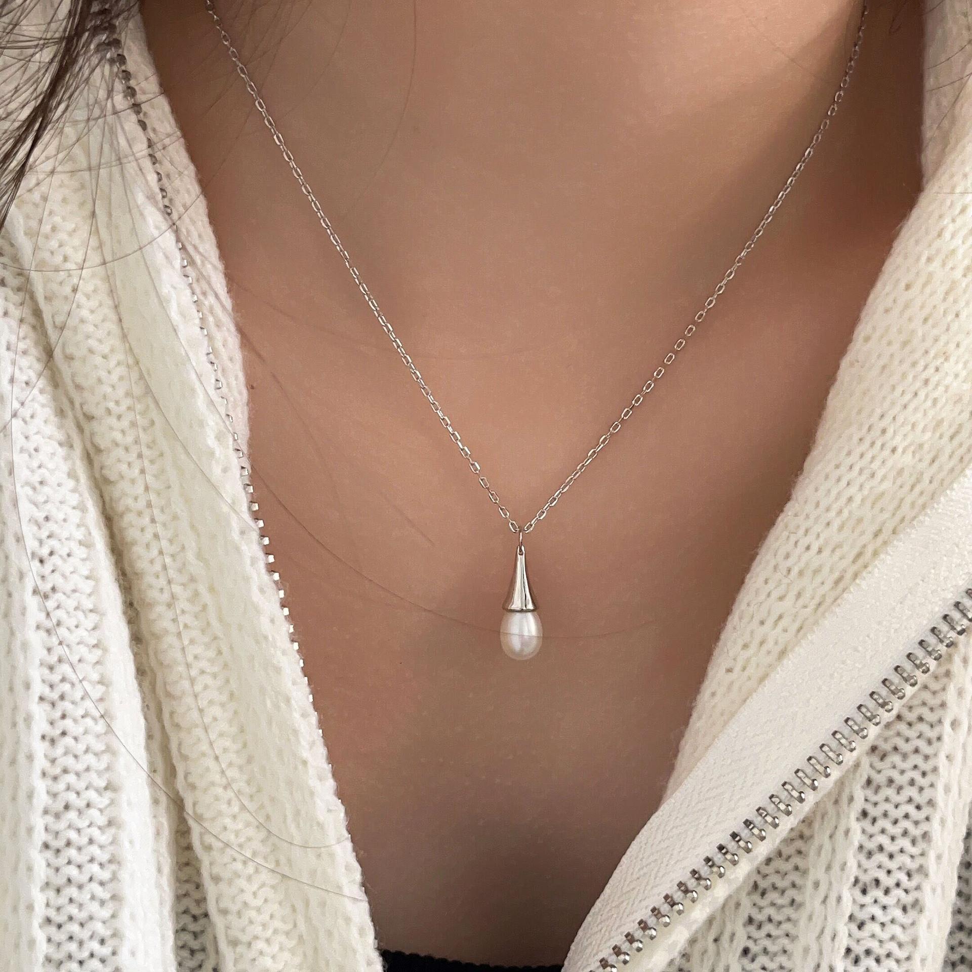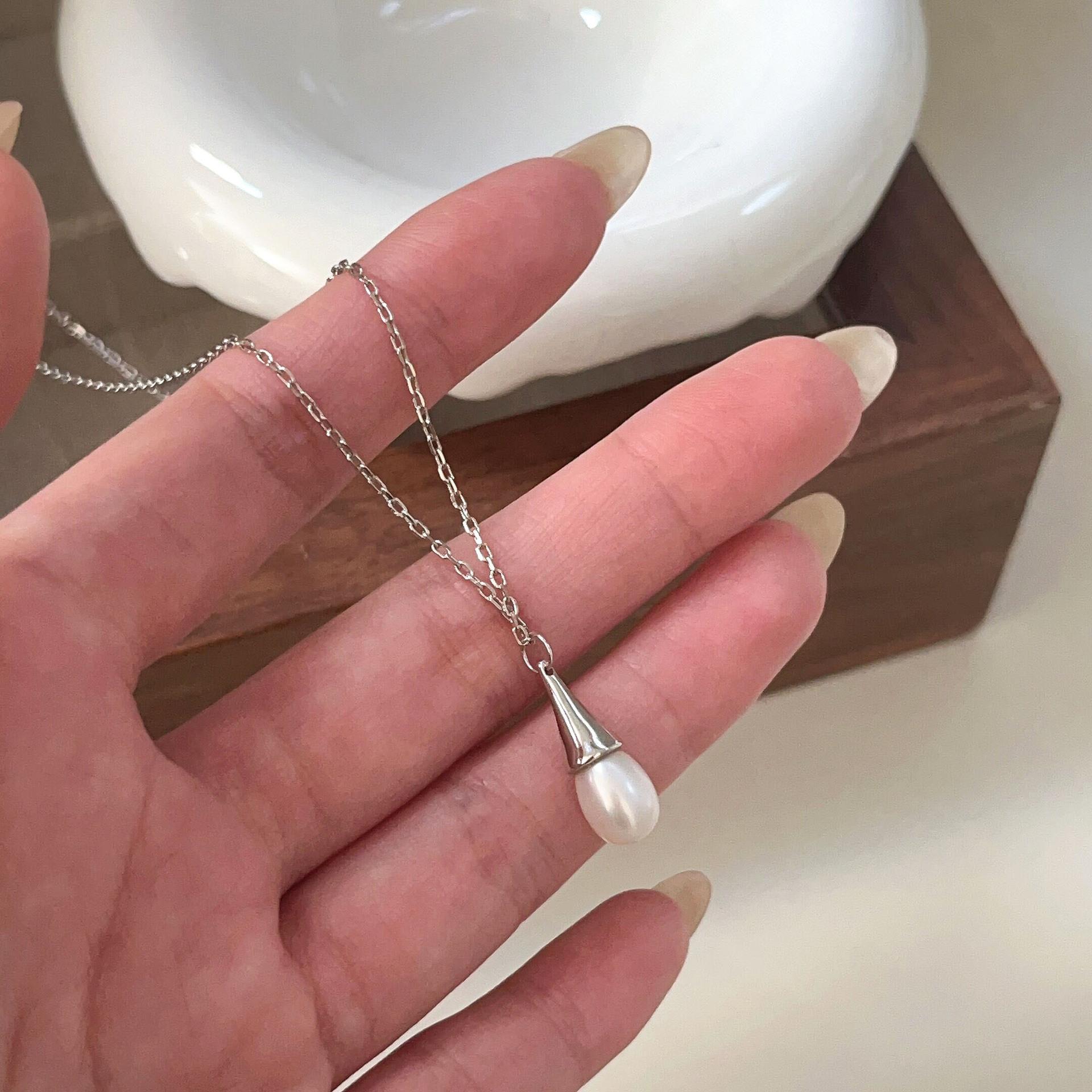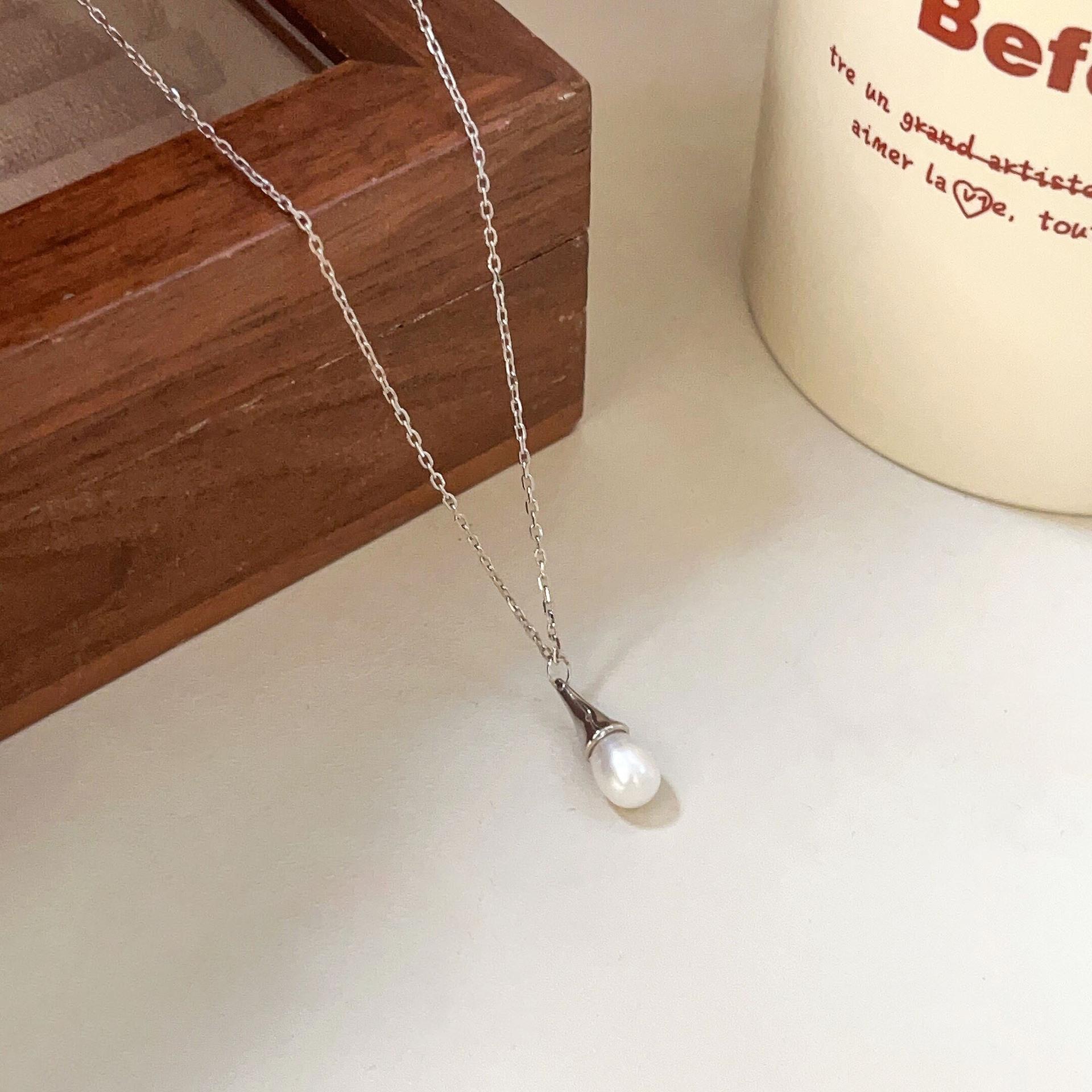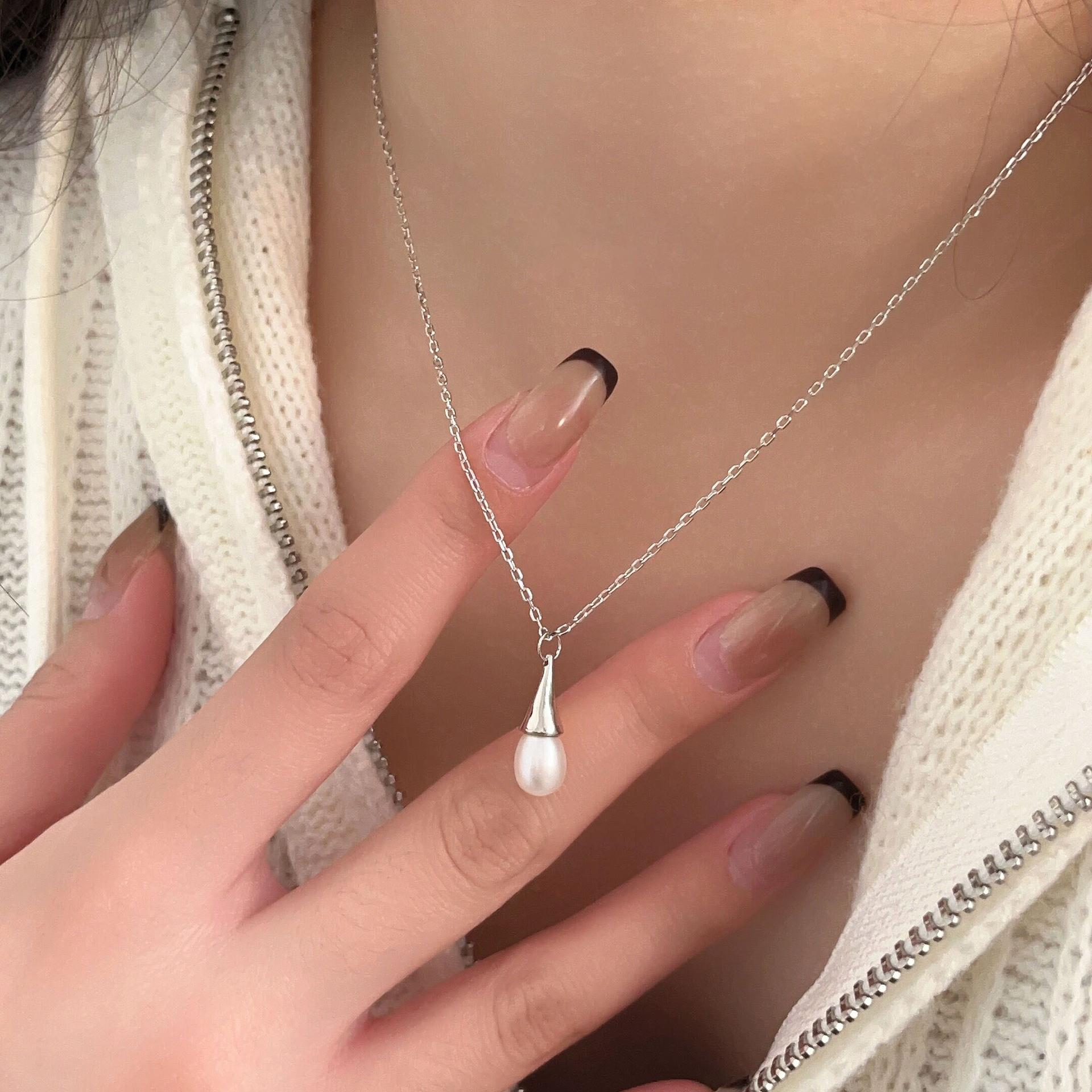 Collar con colgante de perla única de plata esterlina Ruitai s925 con pequeñas costuras, cadena de clavícula ligera de lujo de alta calidad y combinable con todo.