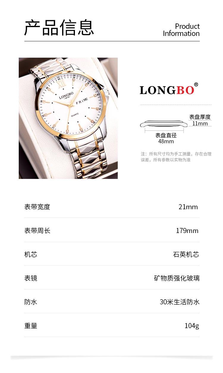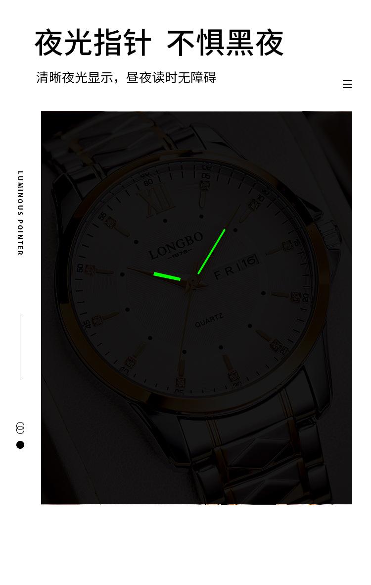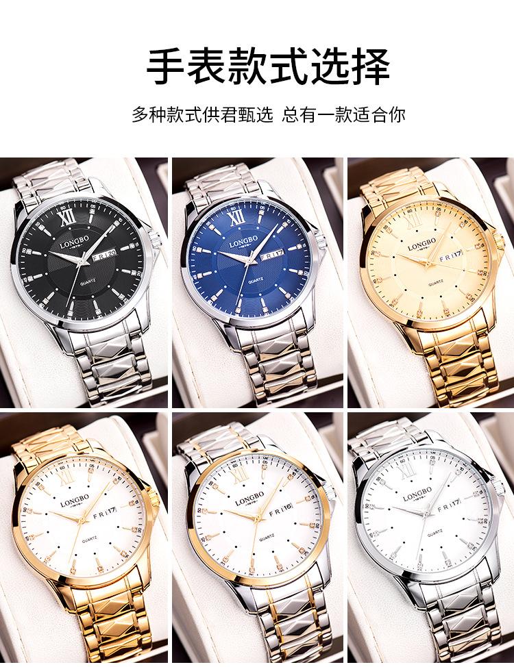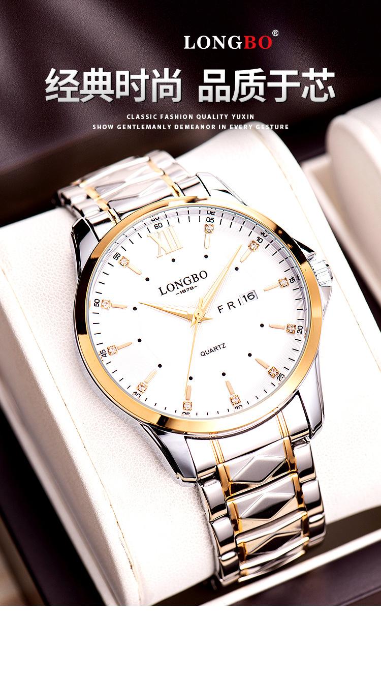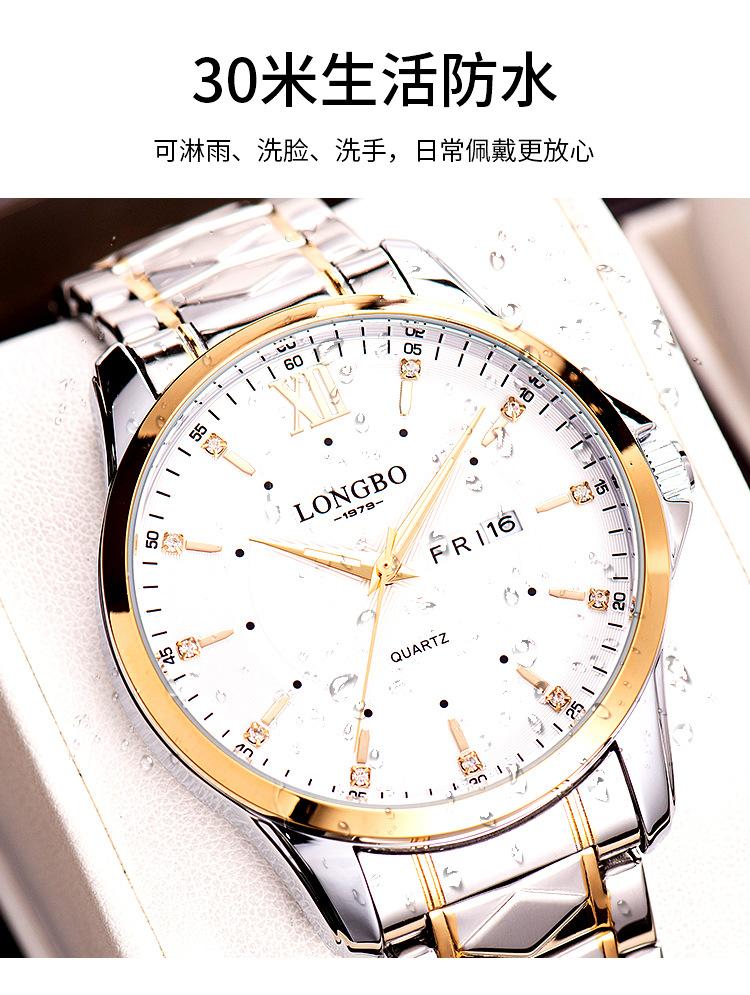 Reloj Longbo nuevo para hombre, resistente al agua, luminoso, doble calendario, versión coreana, reloj de cuarzo, fábrica de temblores, venta al por mayor