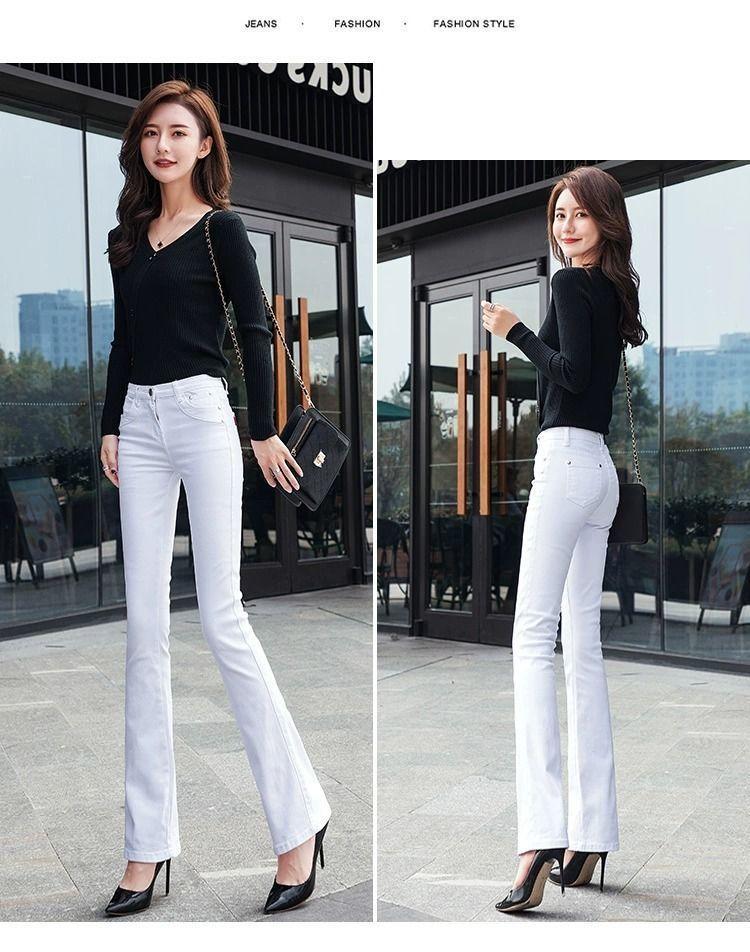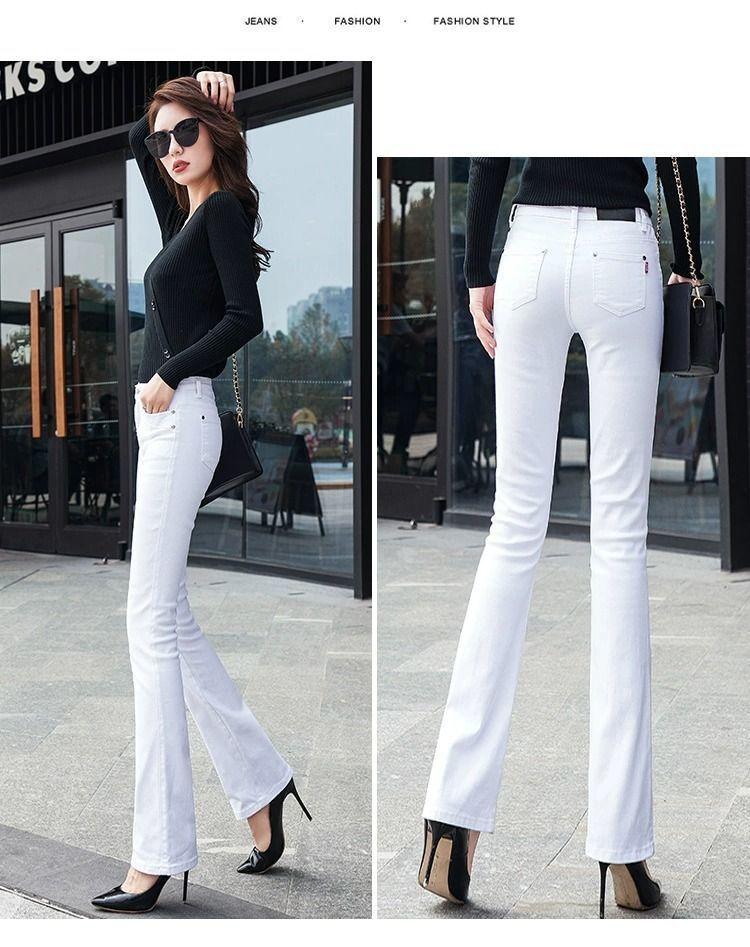 Jeans Acampanados Micro Blancos Delgados de Verano 2025 para Mujer de Cintura Alta Elásticos Adelgazantes Talla Grande Pantalones Casuales