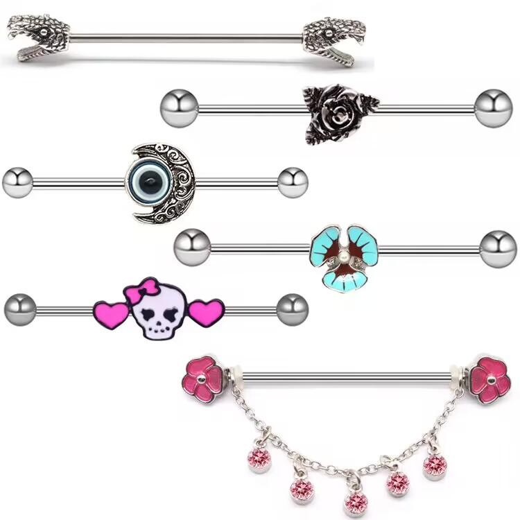 Pendientes de botón con forma de flor transfronterizos europeos y americanos de gatte, pendientes de ojo del diablo, puente de oreja, pendientes de botón de acero inoxidable con calavera, piercing