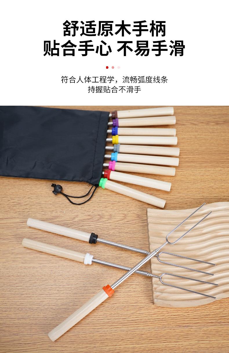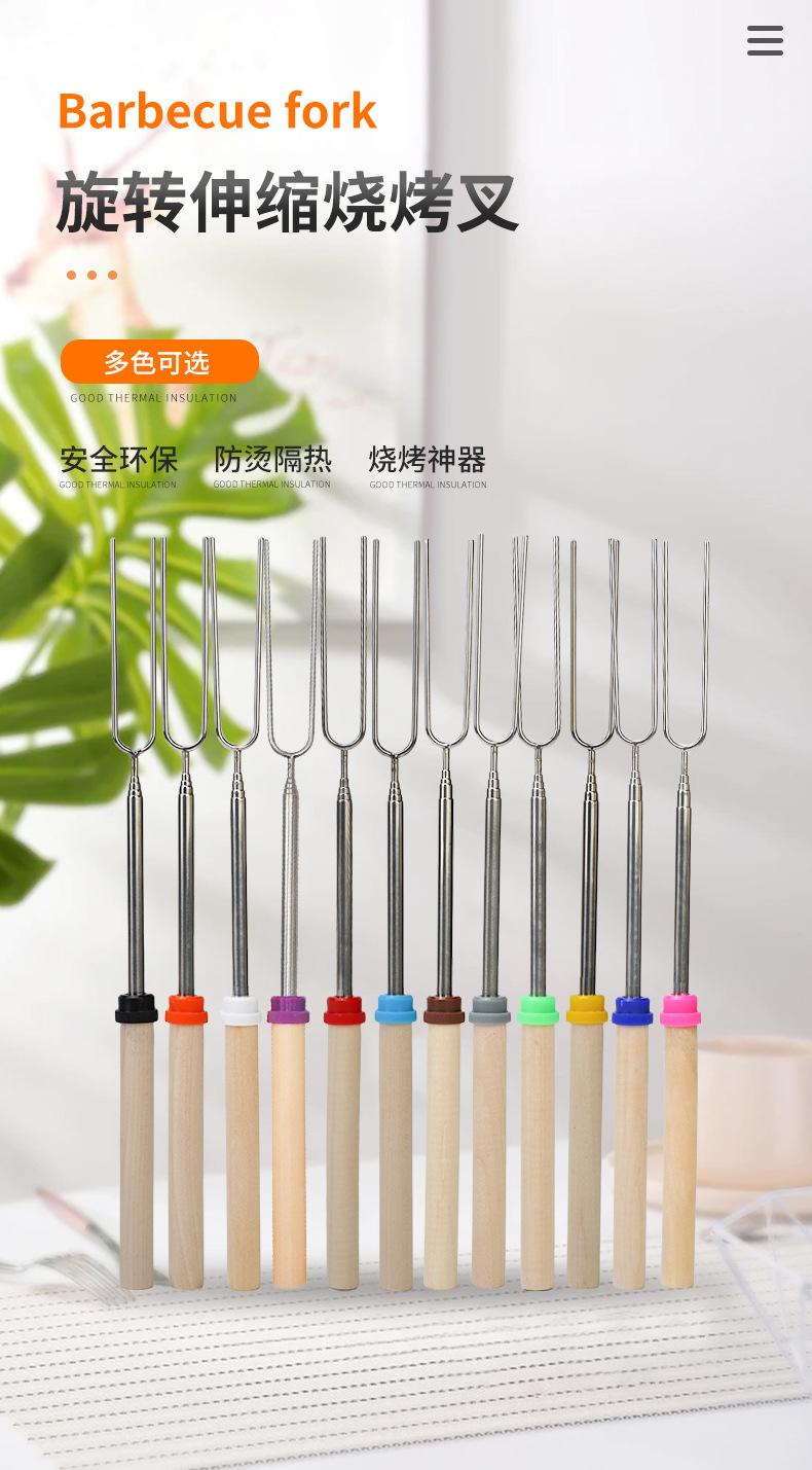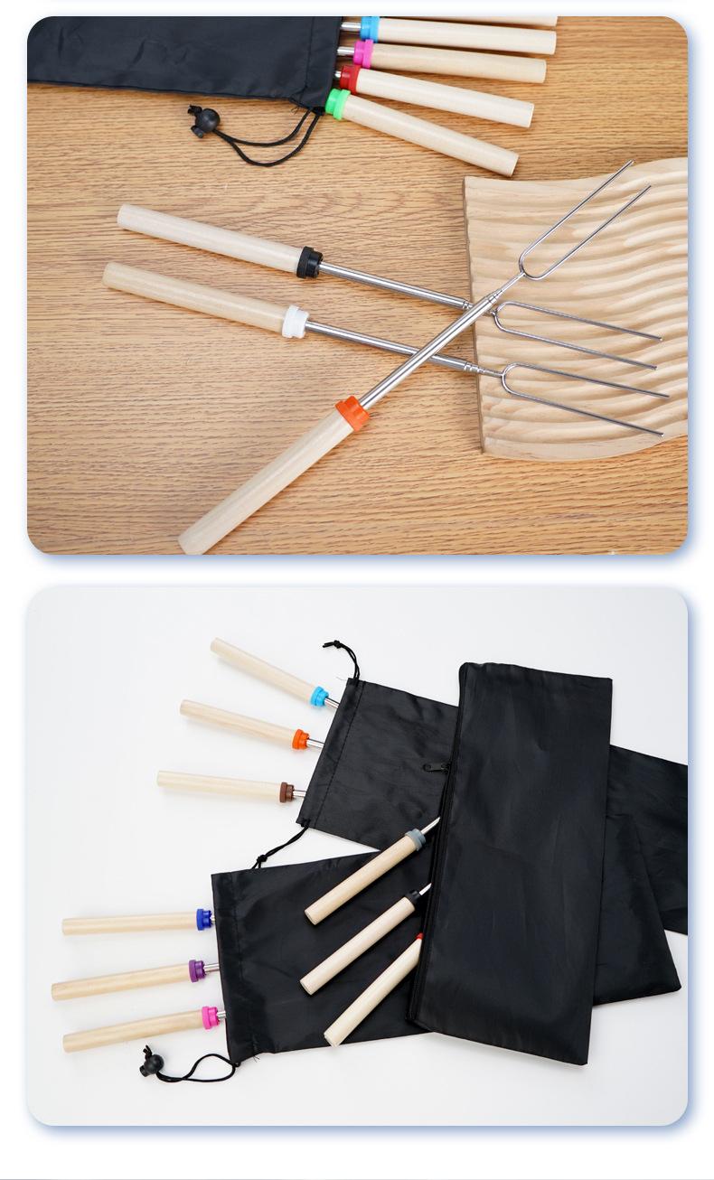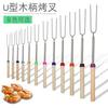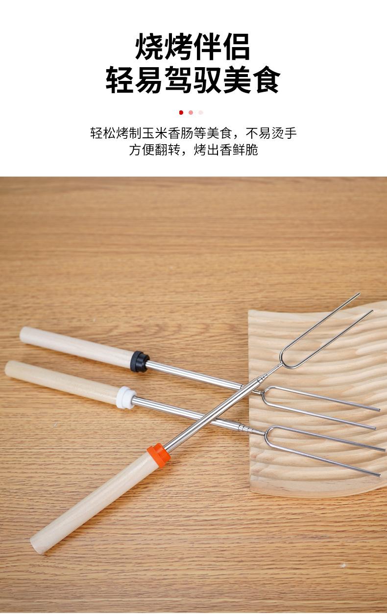 Yibo Bbq Barbacoa al Aire Libre Barbacoa Acero Inoxidable Telescópico Tenedor para Barbacoa Mango de Madera en Forma de U Palo para Barbacoa Tenedor para Barbacoa Brocheta para Barbacoa