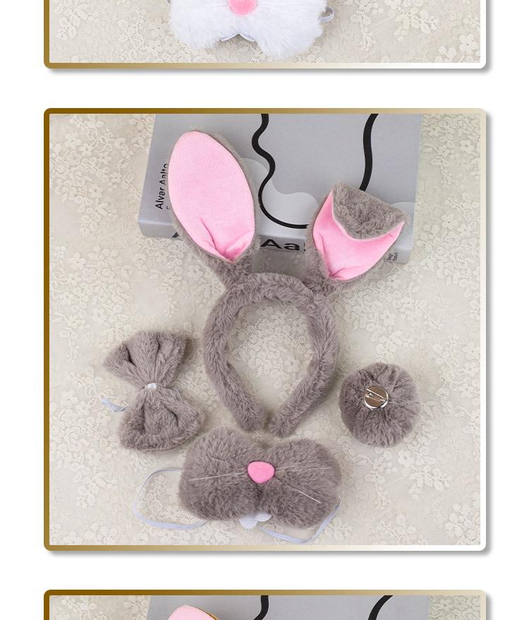 White Rabbit Fur Judy Rabbit Ears 4 Piece Set, Brown Rabbit Fur Judy Rabbit Ears 4 Piece Set, Grey Rabbit Fur ...