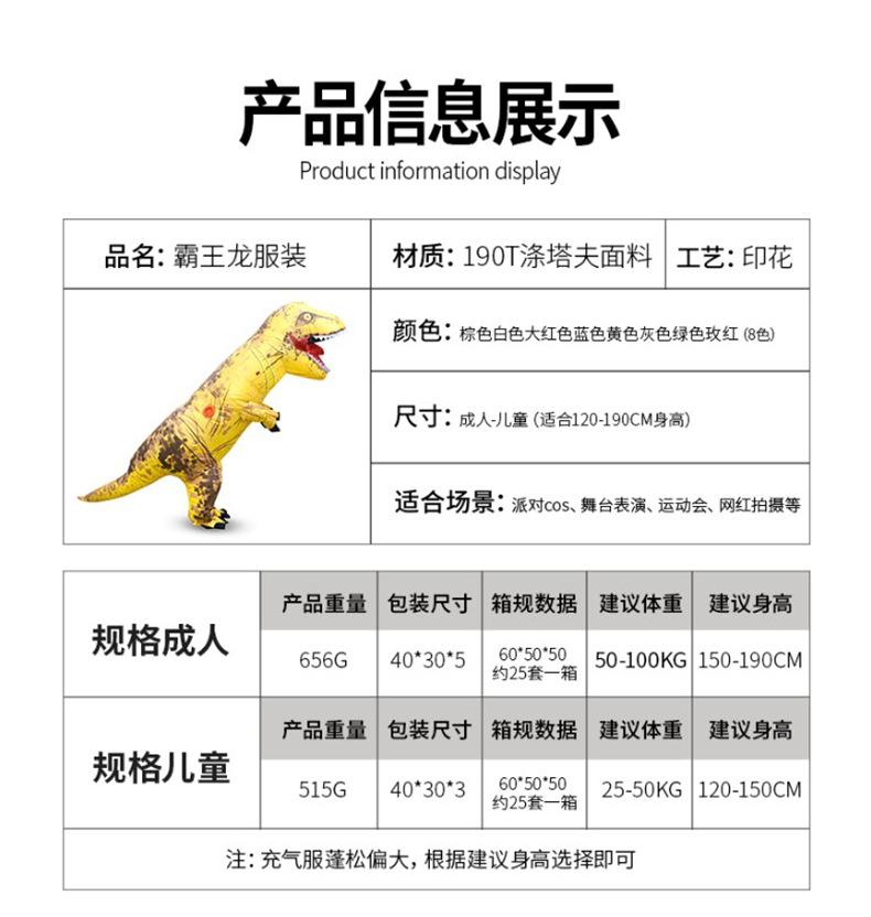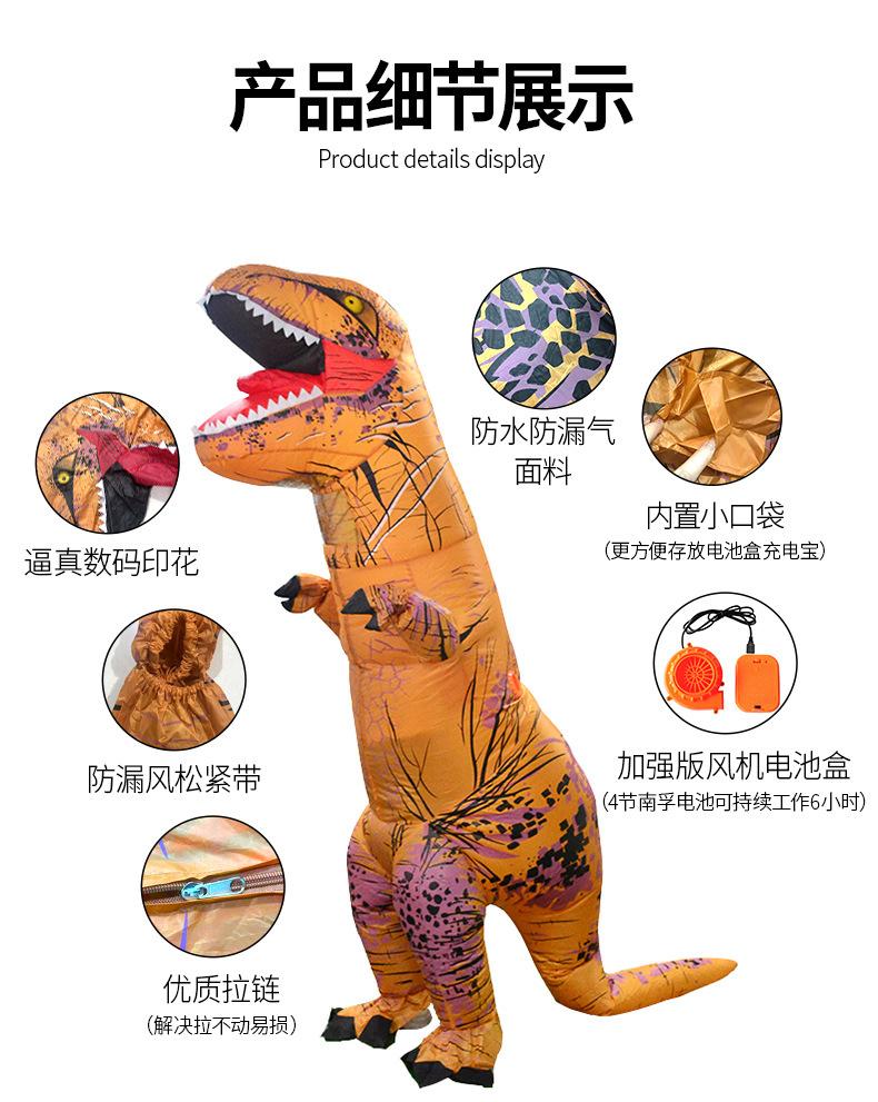 Ropa inflable de tiranosaurio para niños de Halloween, ropa de dinosaurio jurásico, ropa de fiesta, ropa de muñeca divertida